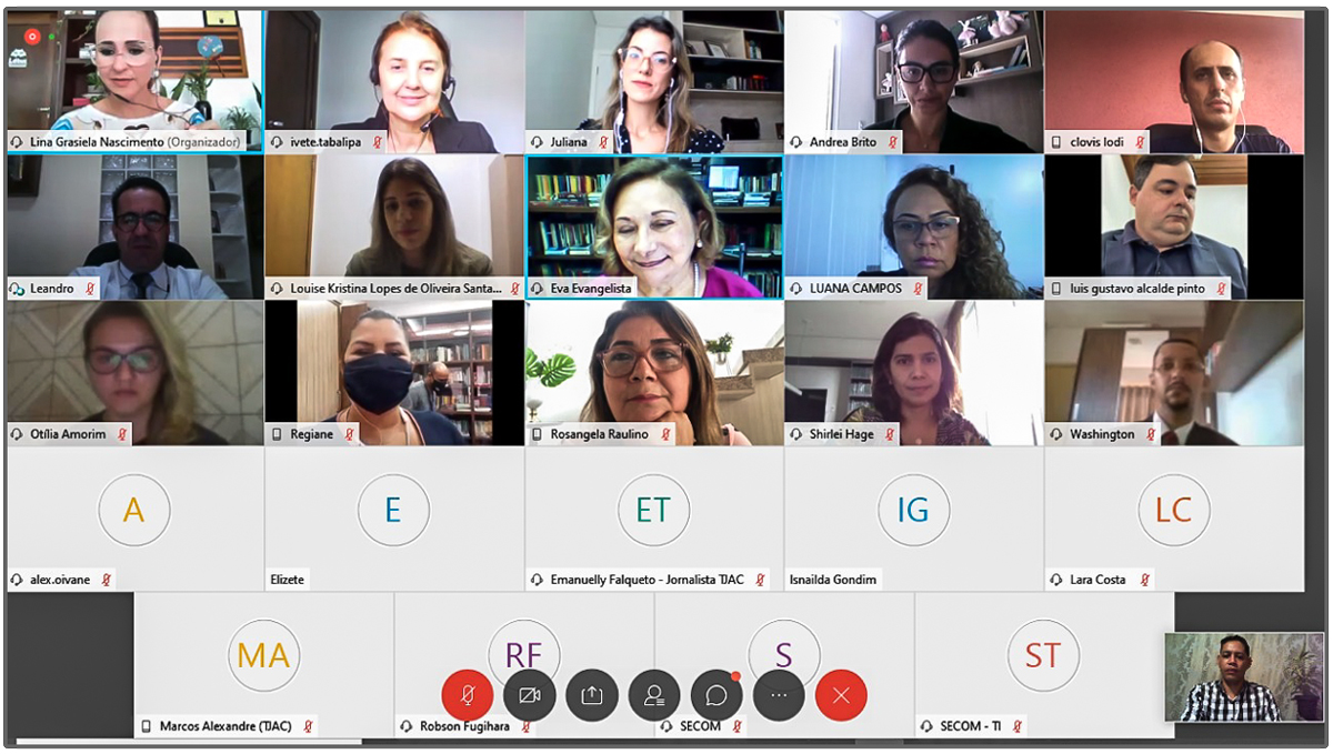 Durante a reunião de iniciativa da Coordenadoria das Mulheres com apoio da administração do Tribunal de Justiça do Acre (TJAC), visando mobilizar as parcerias e colaboração com a campanha, o Juiz de Direito Leandro Grossi, Auxiliar da Corregedoria Geral da Justiça, apresentou Plano de Ação contemplando a execução local da campanha nacional. A desembargadora Eva Evangelista agradeceu o comprometimento de todos os integrantes do Sistema de Justiça, das entidades privadas, e das secretarias estaduais e municipais do Executivo que integram a Rede de Proteção.