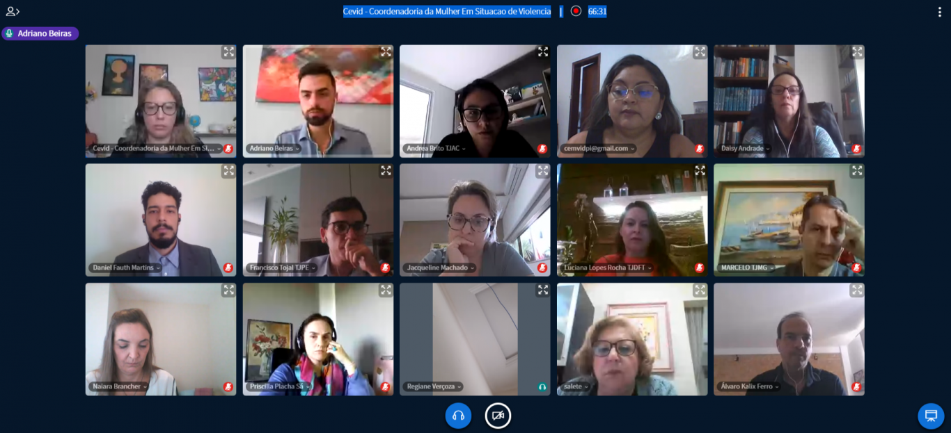 A videoconferência ocorre de forma quinzenal e foi conduzida pela desembargadora Salete Sommariva, presidente do Colégio de Coordenadores da Mulher em Situação de Violência Doméstica e Familiar do Poder Judiciário Brasileiro. A participação acreana foi representada pela desembargadora Eva Evangelista e a juíza de Direito Andrea Brito, titular da Vara de Execuções Penais e Medidas Alternativas da Comarca de Rio Branco.