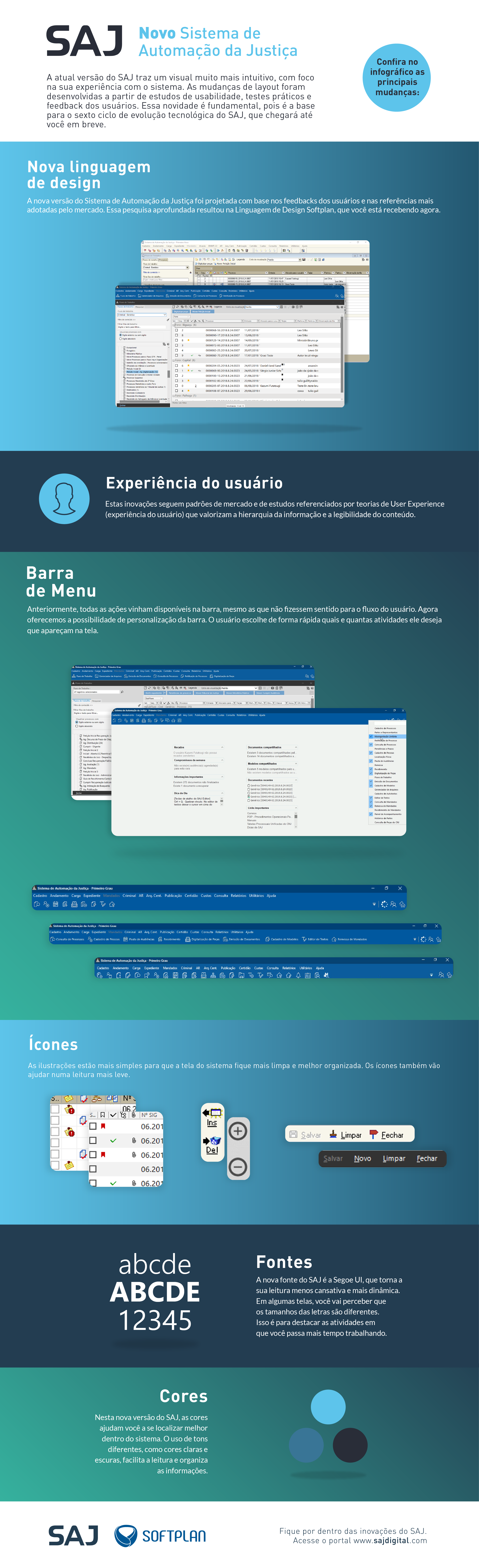 Os fluxos e as automações, segundo a Softplan, não serão alterados, é apenas uma atualização estética que oferece mais conforto e agilidade para a rotina do usuário.