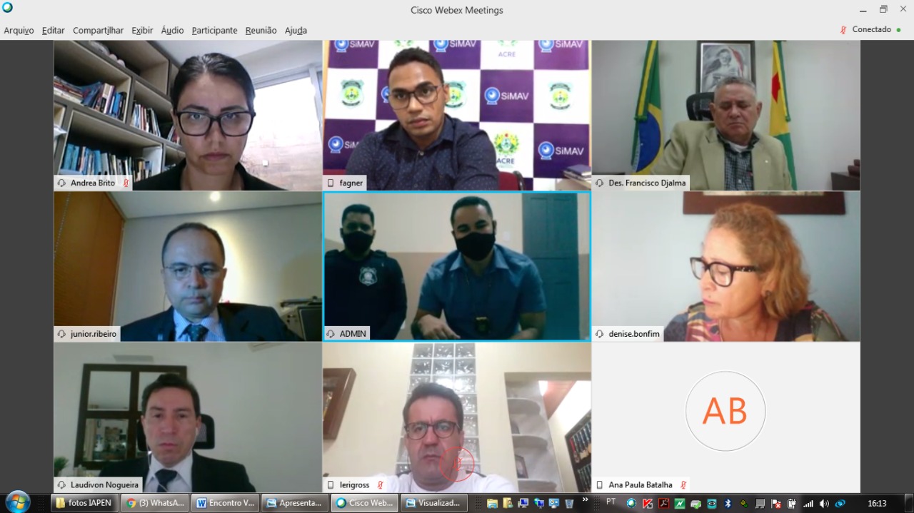 A apresentação foi feita pela equipe da Administração Penitenciária do Acre (IAPEN), via vídeo, aos desembargadores Francisco Djalma (presidente), Laudivon Nogueira (vice) e Júnior Alberto (corregedor-geral). Participaram ainda a desembargadora-coordenadora do Grupo de Monitoramento e Fiscalização do Sistema Carcerário e Socioeducativo (GMF/ TJAC), Denise Bonfim, e os juízes-auxiliares Andréa Brito e Leandro Gross.