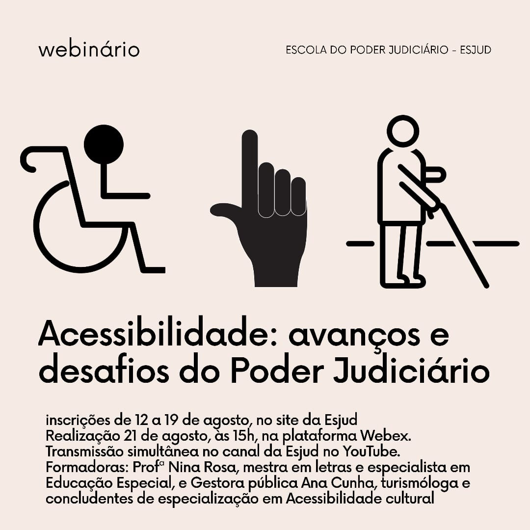 A Escola do Poder Judiciário do Acre e a Comissão Estadual das Mulheres em Situação de Violência Doméstica e Familiar (COMSIV) realizarão no próximo dia 21, o webinário intitulado ‘Acessibilidade: Avanços e Desafio no Poder Judiciário’. A atividade será voltada para magistrados e servidores do TJAC, instituições parceiras e entidades associativas envolvidas com a temática. Estão disponibilizadas cem vagas.