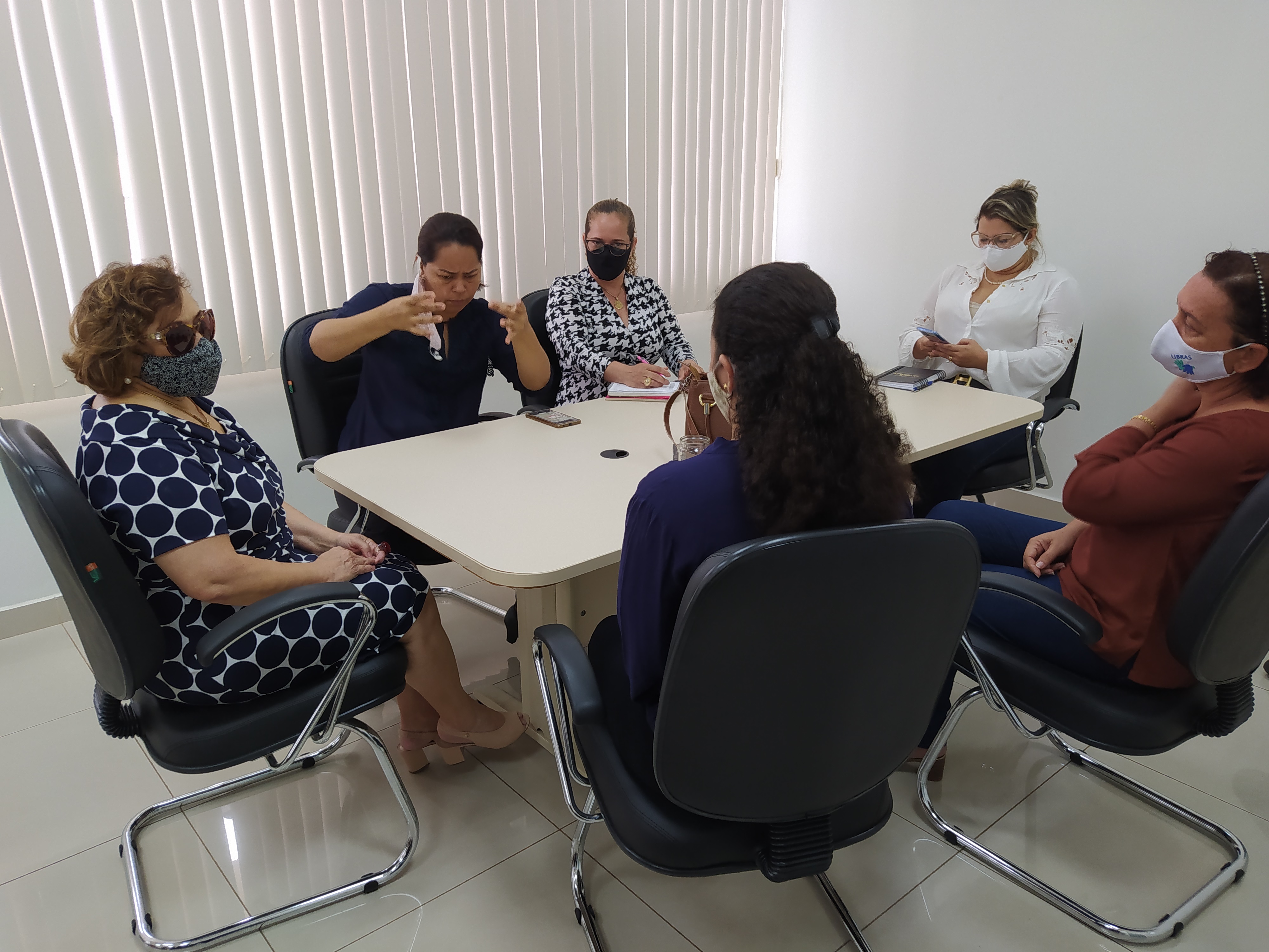 *Os participantes da reunião cumpriram os protocolos de segurança devido a pandemia, e se mantiveram com o uso de máscara. Apenas a intérprete foi autorizada a retirar no momento da tradução, para que a mulher, que é surda, pudesse acompanhar o diálogo.