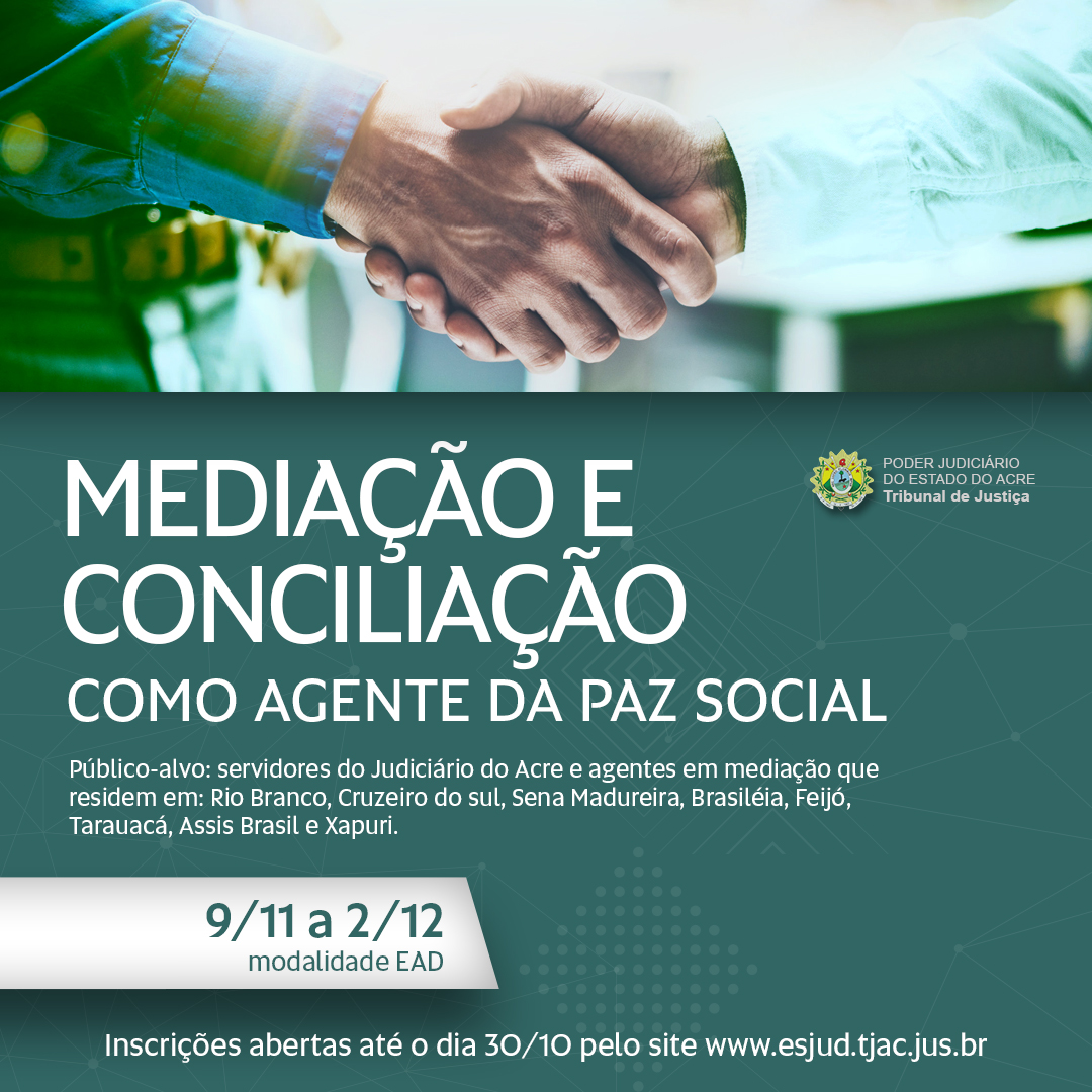 Curso de Mediação e Conciliação como Agente da Paz Social está com inscrições abertas até final do mês – Poder Judiciário do Estado do Acre