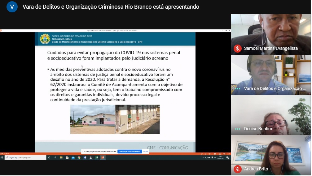 Nesse sentido, foi implantado o Programa Justiça Presente, que em 2020 foi ampliado tornando-se o Programa Fazendo Justiça. No estado, ele é executado no Tribunal de Justiça do Acre (TJAC), por meio GMF, e conta com a parceria do Ministério Público, Defensoria Pública, Instituto de Administração Penitenciária (IAPEN) e toda a rede de proteção social local, além da duas consultoras dos CNJ/PNUD.