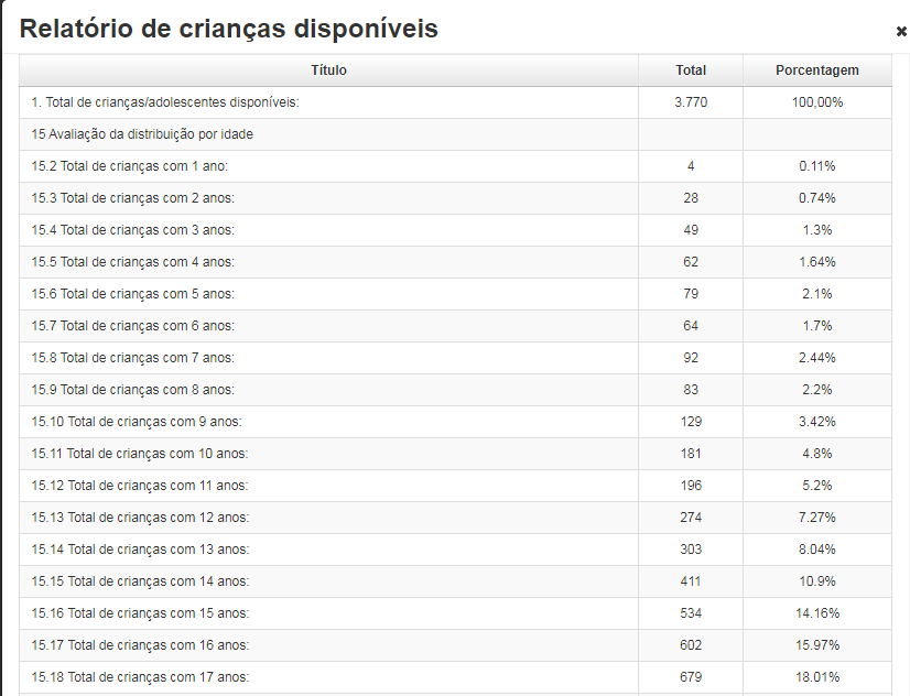 No Acre há 103 pretendentes cadastrados e sete crianças disponíveis para adoção. O mesmo ocorre quando se filtra os dados nacionais quanto a faixa etária. Veja os dados oficiais: