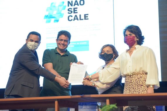 A solenidade de assinatura contou com a presença da desembargadora Eva Evangelista, que atua na Coordenadoria Estadual da Mulher em Situação de Violência Doméstica e Familiar (Comsiv) e na ocasião representou a presidente do TJAC, desembargadora Waldirene Cordeiro, do governador do estado, Gladson Cameli, da procuradora-geral do Ministério Público do Acre, Katia Rejane, e do diretor-presidente do Instituto de Administração Penitenciária do Acre, Alernilson Cunha.