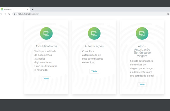 Para obter a Autorização Eletrônica de Viagem (AEV) basta acessar o Sistema de Atos Notariais Eletrônicos, o e-Notariado, no www.e-notariado.org.br. No site procure o ícone AEV, sigla que indica o nome do procedimento, clique e preencha todas as informações exigidas.