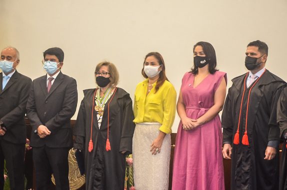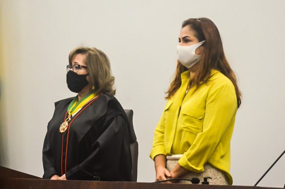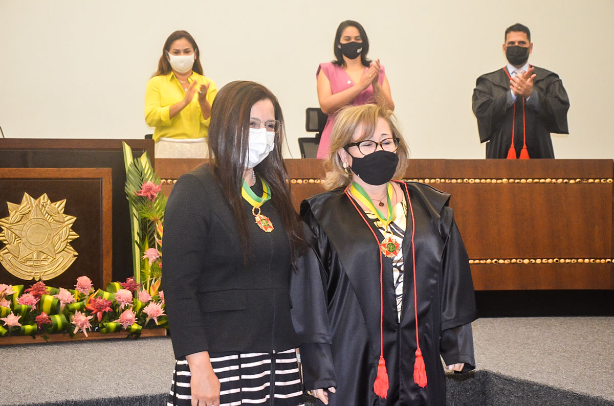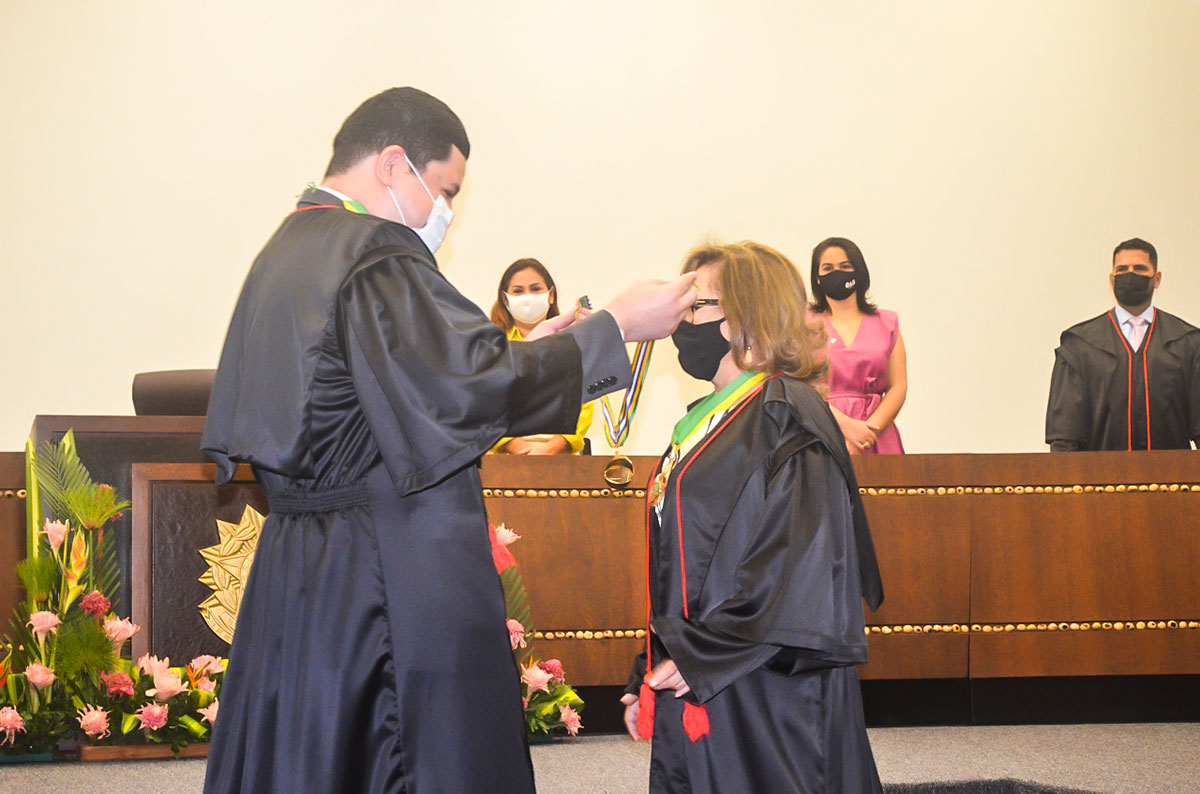 A presidente Denise Bomfim, por sua vez, também foi homenageada por seus pares com a comenda da Medalha de Alta Distinção Ministro Célio Silva, que é outorgada pelo Colégio Permanente de Juristas da Justiça Eleitoral.