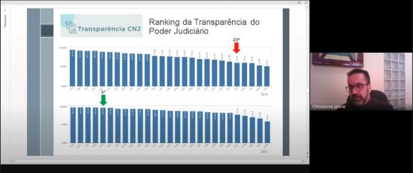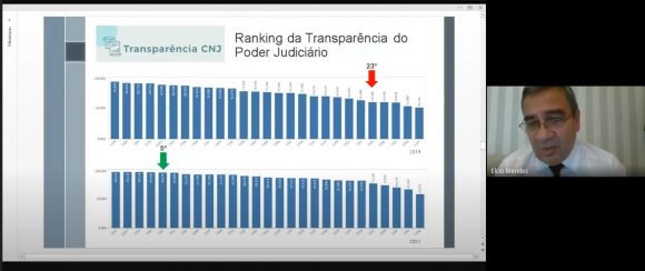 Na oportunidade, o juiz-auxiliar da Presidência, Leandro Gross, apresentou sobre o ranking da transparência, onde o Poder Judiciário tem avançado nos últimos anos, e o Sistema DataJud, usado para estudos estatísticos que permitem o diagnóstico da realidade do Poder Judiciário a fim de contribuir com a construção de políticas públicas que realmente garantam os direitos dos cidadãos que buscam solucionar seus conflitos por meio do sistema de justiça.