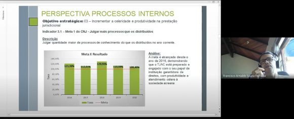 Na abertura da atividade, que ocorreu virtualmente, a presidente do TJ acreano, desembargadora Waldirene Cordeiro, enfatizou sobre a finalidade da RAE, que é um balanço das metas alcançadas e perspectiva de novos objetivos, com vistas no aperfeiçoamento da prestação jurisdicional.