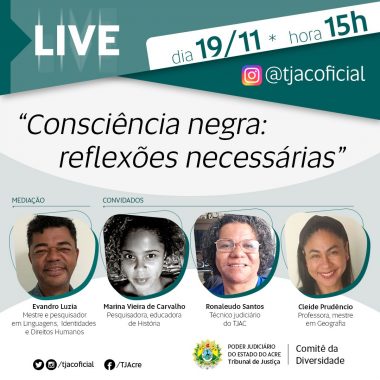 O dia da Consciência Negra é celebrado em 20 de novembro, data atribuída à morte de Zumbi dos Palmares, um dos maiores líderes da libertação escravista. Deste modo, esse se tornou um momento de comemorar o valor da comunidade negra e por isso, nesta sexta-feira, dia 19, será realizada uma Live no instagram do tribunal (@tjacoficial), com o tema “Consciência negra: reflexões necessárias”.