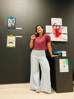 Servidora pública, artista plástica e poetisa. Em meio à vida de “concurseira” e sonhos da vida adulta, essa mulher tem expressado sua paixão pelo universo artístico com intensidade em suas obras. Seu projeto atual é chamado Arto, resultado da união da arte com o direito.
