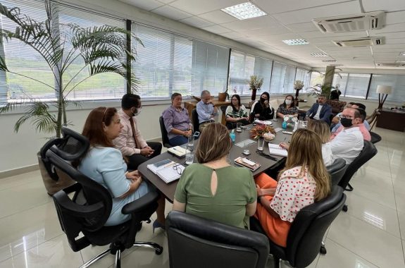 Acompanhada dos juiz e juíza-auxiliar da presidência, Leandro Gross e Andréa Brito, a presidente reuniu em seu gabinete as diretoras e diretores de Gestão Estratégica, Logística, Gestão de Pessoas, Finanças e Informação de Custos, Informação Institucional, Tecnologia da Informação, Regional 1.