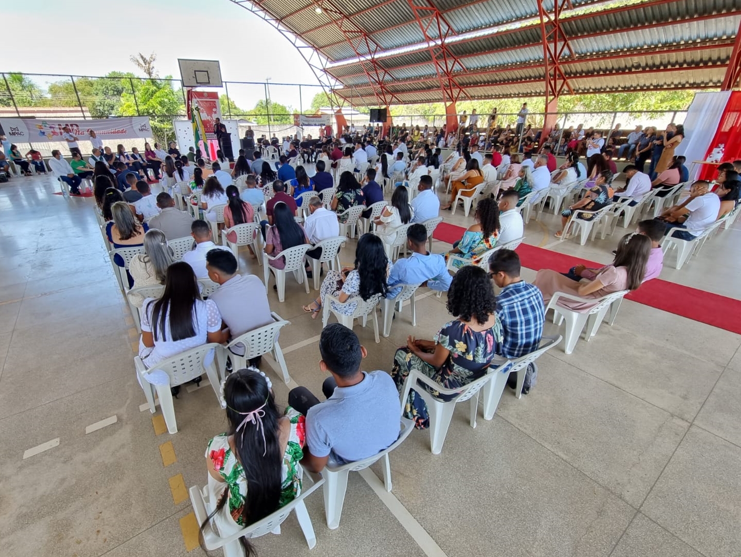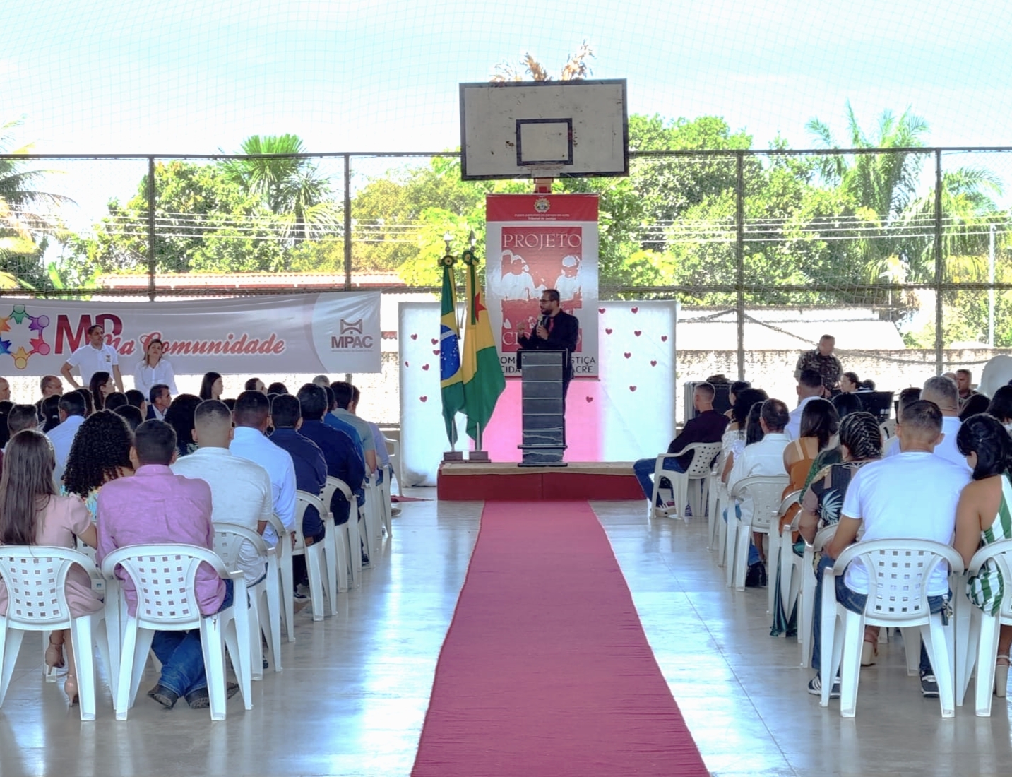 Por meio do Projeto Cidadão do Tribunal de Justiça do Acre (TJAC), cinquenta casais legitimaram e celebraram a união na Vila do Incra, em Porto Acre, neste sábado, 7. A cerimônia foi realizada por meio do programa “MP na Comunidade”, do Ministério Público do Estado do Acre (MPAC).