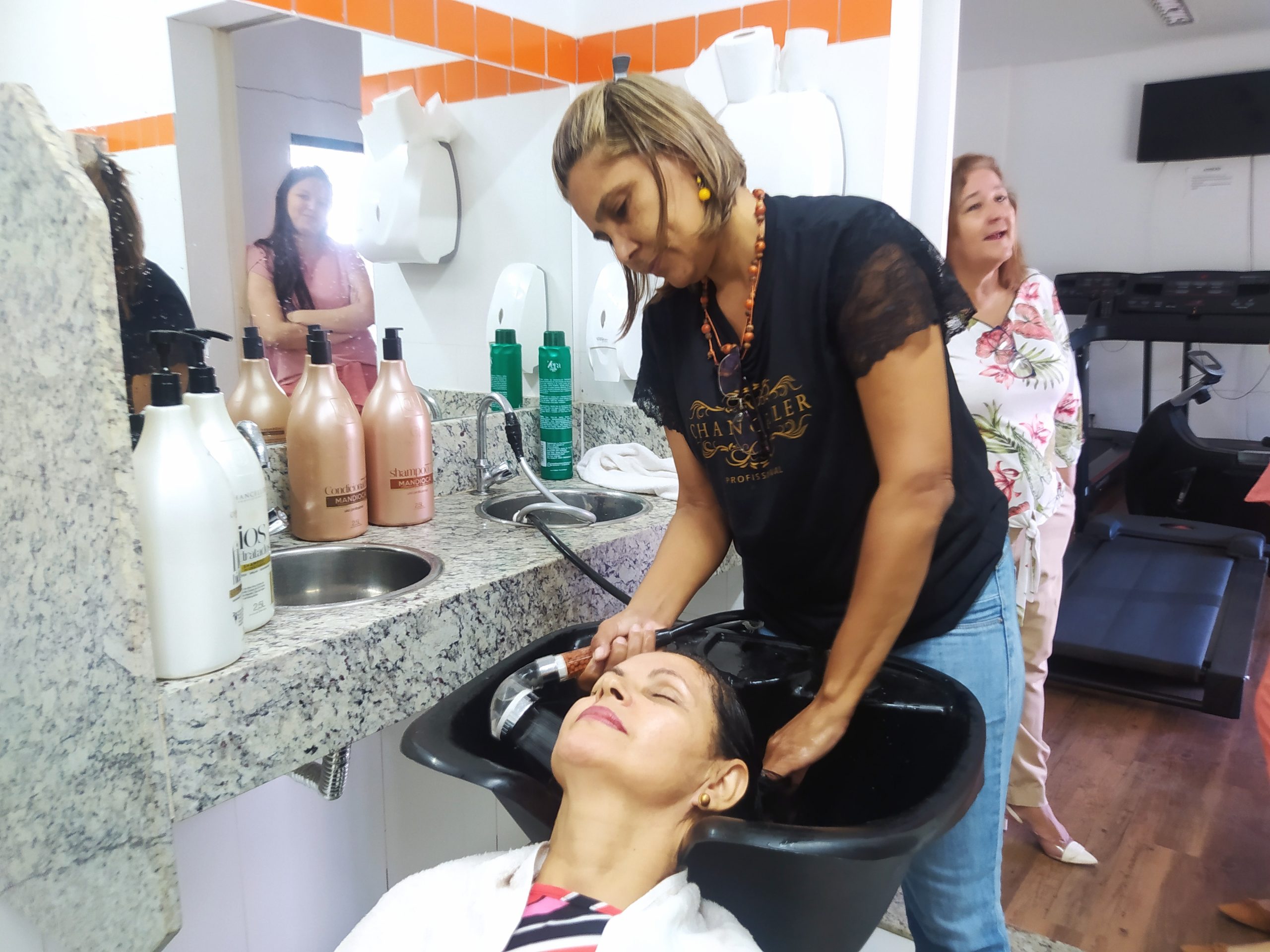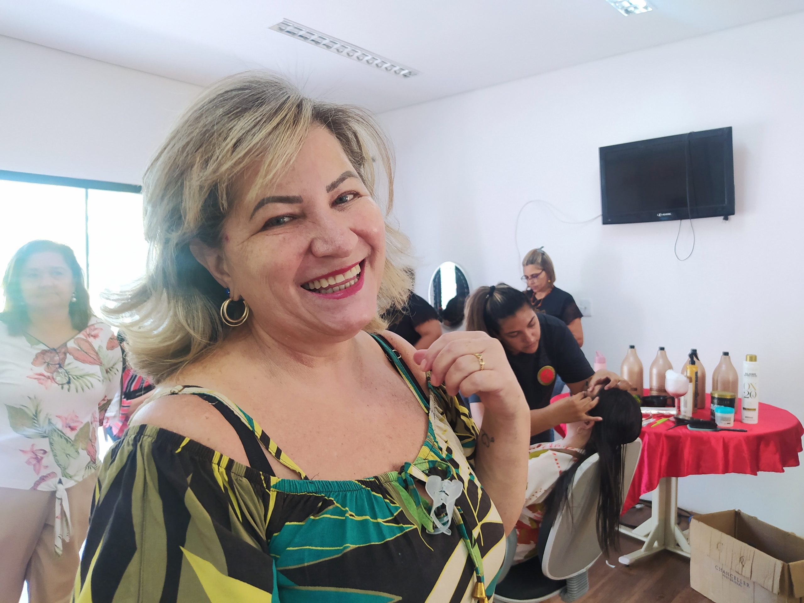 Somado à isso existe um trabalho de cuidado com saúde mental e ações estéticas que reúnem pessoas para terem um momento de distração e relaxamento em meio as rotinas diárias, como foi o caso desta sexta-feira, com o salão de beleza que reuniu diversas servidoras. A assessora da Escola do Poder Judiciário, Adalcilene Pinheiro, mãe de três filhos que são o orgulho dela, foi cedo aproveitar os atendimentos.