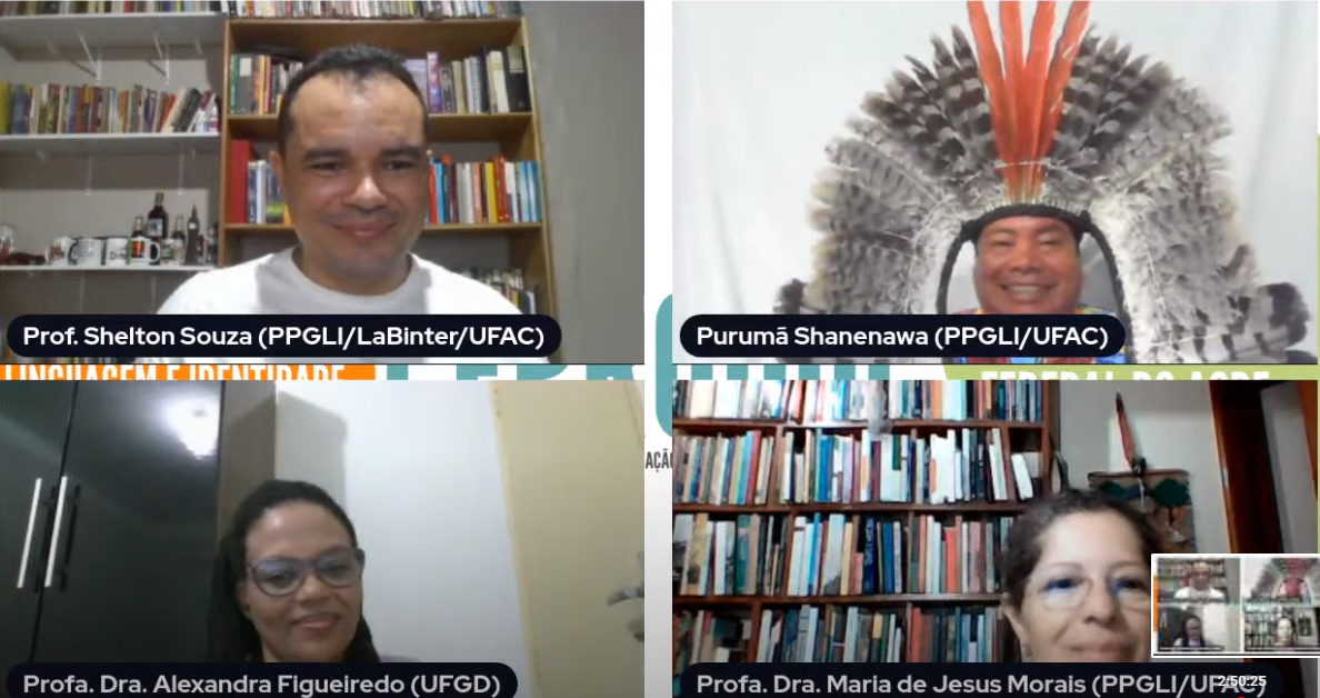 Compuseram a banca o professor orientador Shelton Souza e as professoras doutoras Alexandra Figueiredo e Maria de Jesus, que além da aprovação recomendaram a publicação da dissertação como livro. Assista na íntegra: clique aqui! No encerramento Purumã falou com a voz embargada: “hoje eu sou mestre não para os Shanenawas. Hoje eu sou mestre para a universidade, pra ela conhecer, pra ela saber que os indígenas também são capazes – de ser pesquisador, de ser professor, de ocupar os espaços onde eles acharem que é necessário. Tenho o conhecimento diferente, mas eu não posso arredar daquele espaço que é meu também. Um caminho que pode ser trilhado por muitos outros”, concluiu. Shava! Shava!