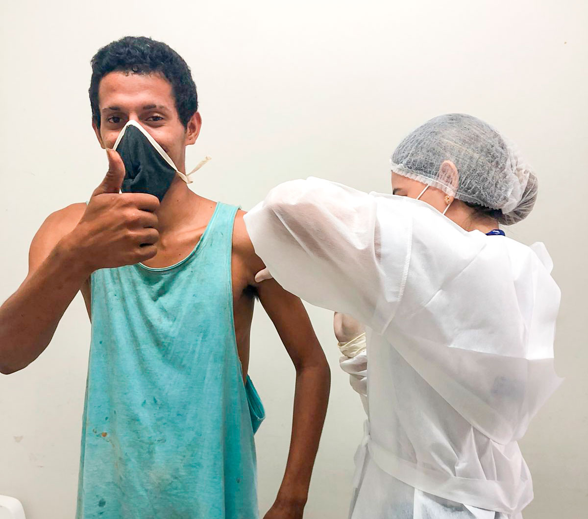 A meninice que aparece em algumas frases, também é nítida quando ele fechou os olhos com medo da vacina da gripe e covid-19 que tomou hoje. Nada disso estava em seus planos, porém como teve a curiosidade de ver o que estava acontecendo no Projeto Cidadão e um colega foi tomar vacina, decidiu tomar também.