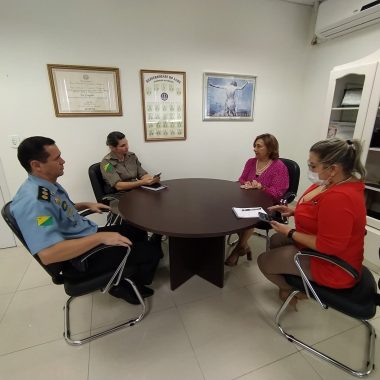 E para continuar garantindo qualidade no atendimento às vítimas, reunião de alinhamento foi realizada nesta segunda-feira, 27, entre a coordenadora Estadual das Mulheres em Situação de Violência Doméstica e Familiar do Poder Judiciário Acreano, desembargadora Eva Evangelista; a secretária de Programas Sociais, Regiane Verçosa; a tenente-coronel Alexsandra Rocha e o tenente-coronel Cristian Diogo.