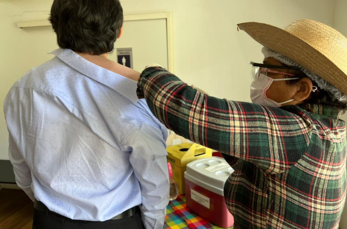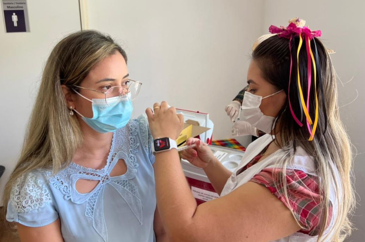 Foto da servidora Dianna sendo vacinada