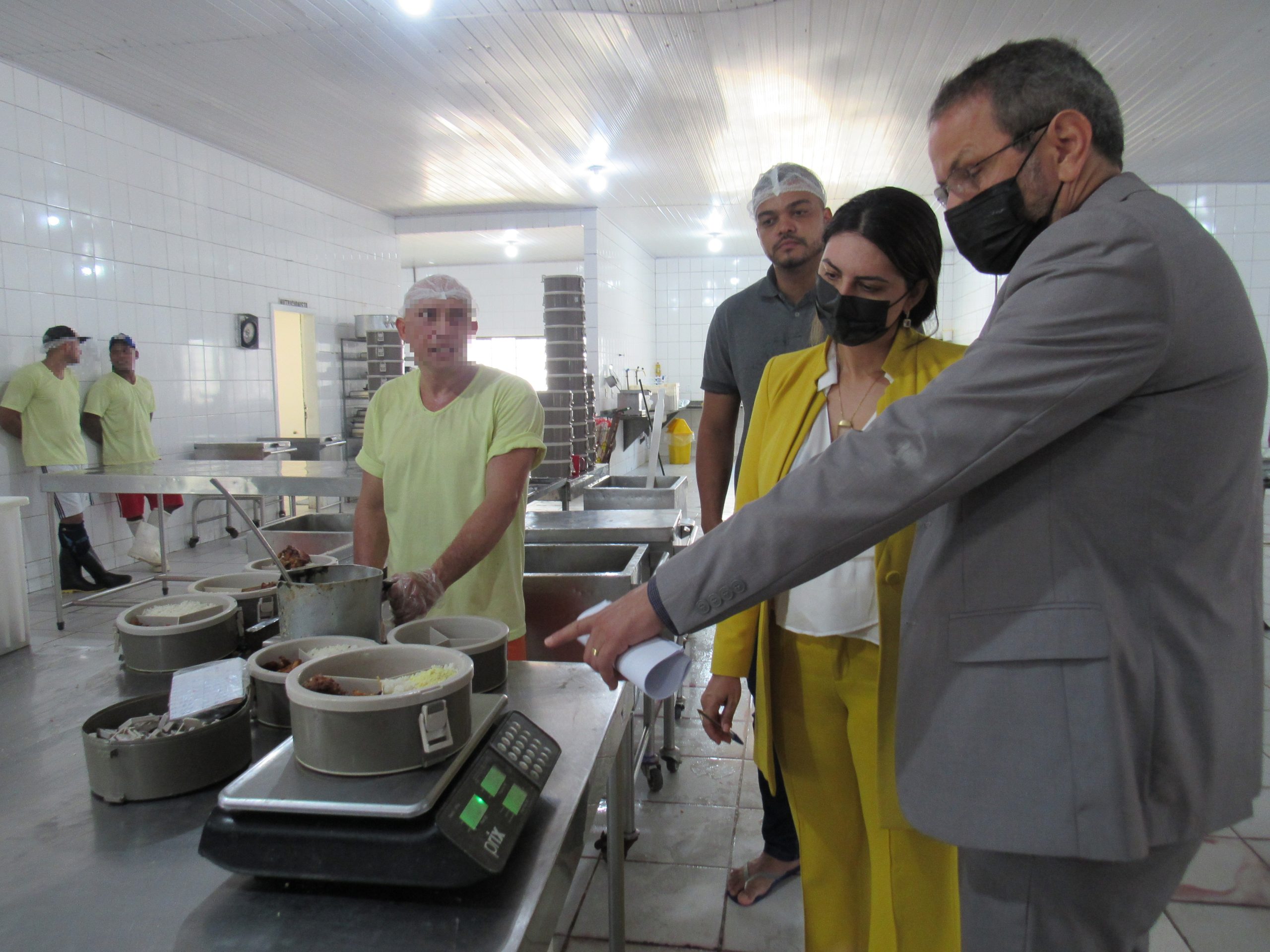 A distribuição das quantidades estava sendo feita de forma autônoma, então a juíza Andrea Brito sugeriu que fosse realizada a pesagem de uma marmita, uma vez que há uma norma para que os usuários do sistema penitenciário recebam 800 gramas de comida nas refeições principais.