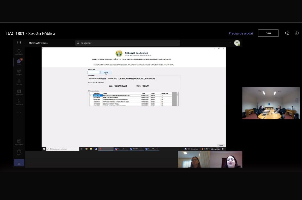 Na última terça-feira, 9, às 13h, horário do Acre, e às 15h, horário de Brasília, foi realizada a sessão pública virtual onde foram sorteados os dias de aplicação e arguição dos candidatos e candidatas da prova oral do concurso para ingresso na magistratura acreana.