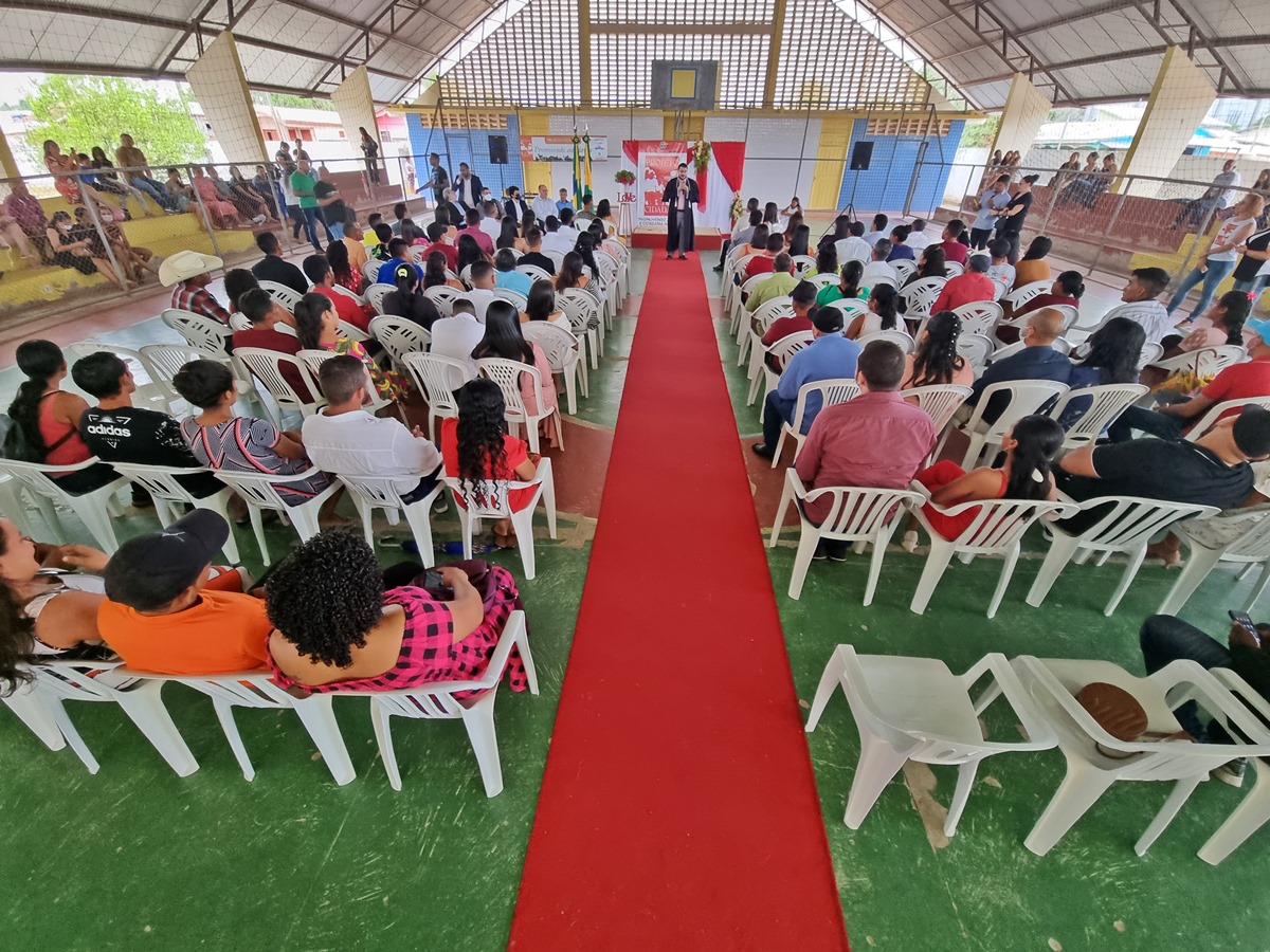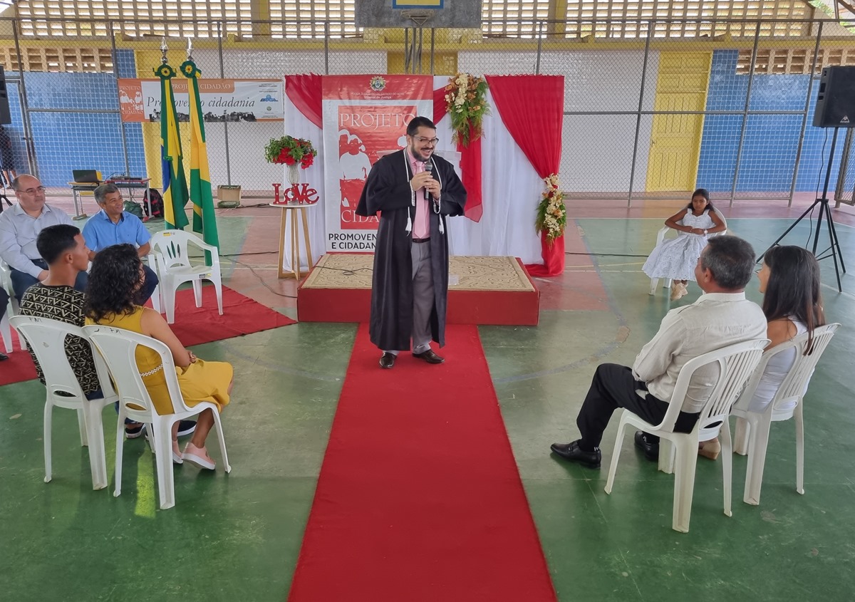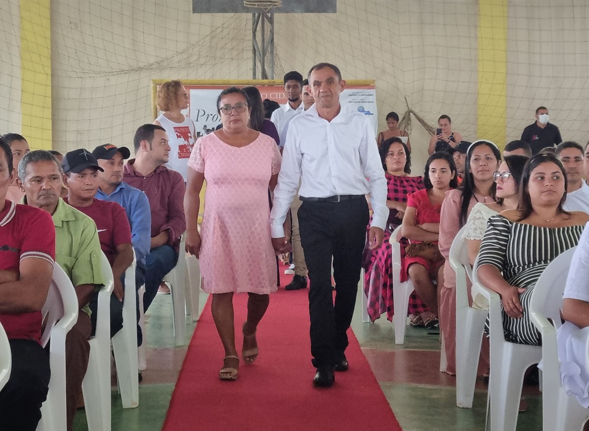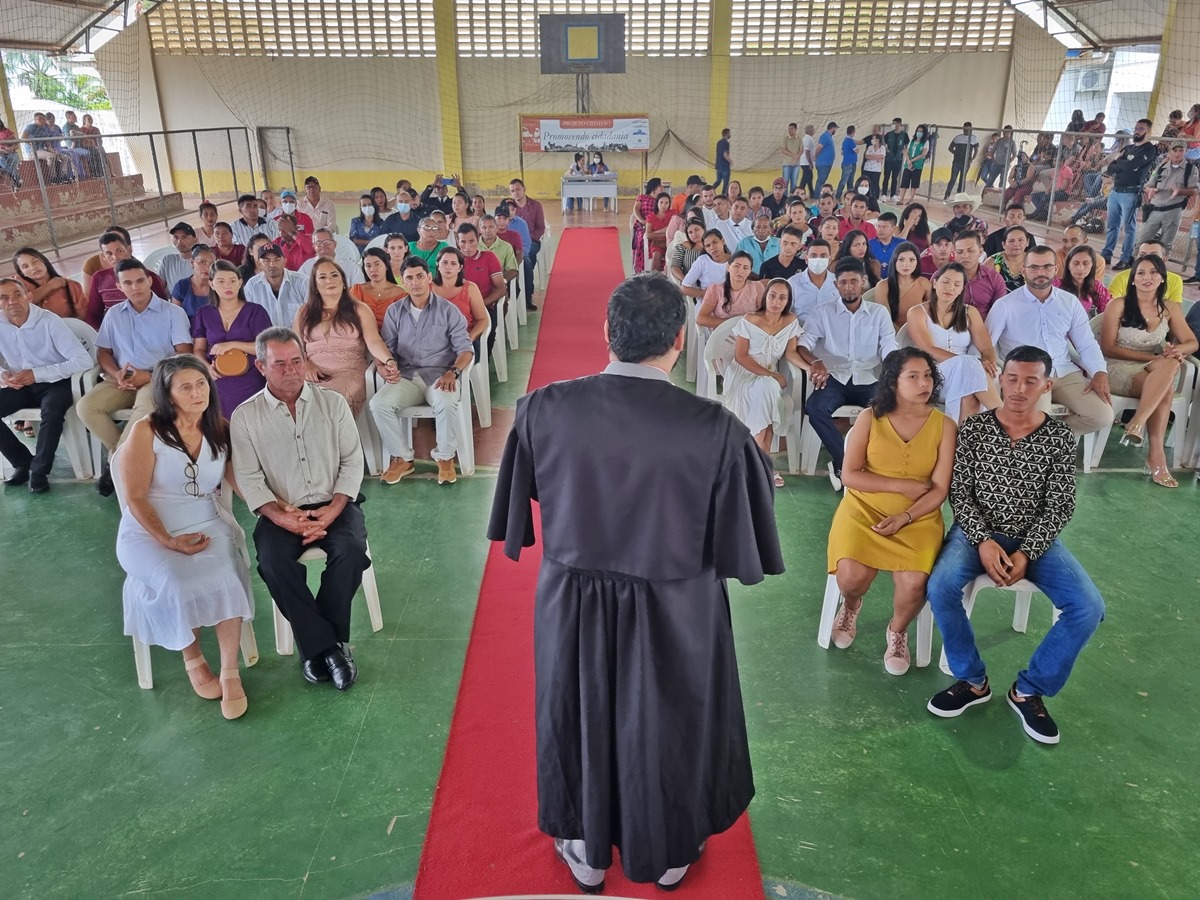 Cinco de agosto de dois mil e vinte e dois, dez horas da manhã. Essa data ficará marcada na vida de quarenta e sete casais, além de padrinhos e testemunhas presentes na cerimônia do Casamento Coletivo, realizado nesta sexta-feira em Feijó. A realização é parte do Projeto Cidadão com o deferimento da presidente do Tribunal de Justiça do Acre, desembargadora Waldirene Cordeiro, para atender o pleito da da população da “terra do açaí”.