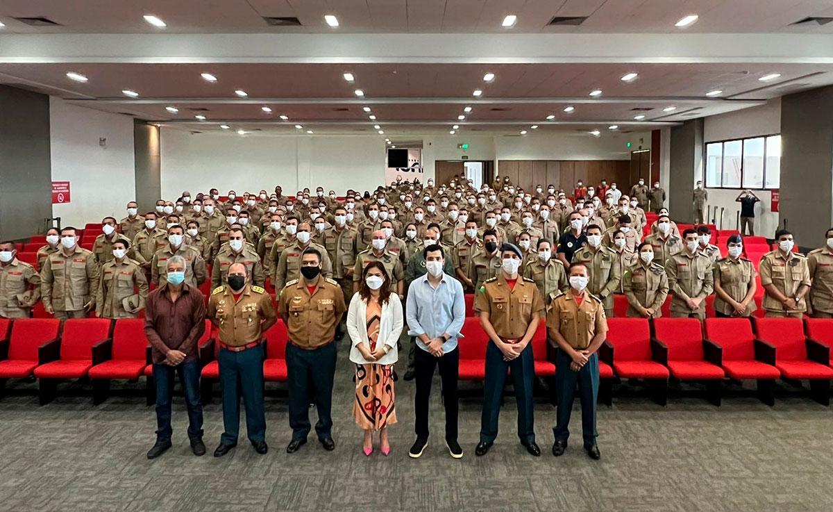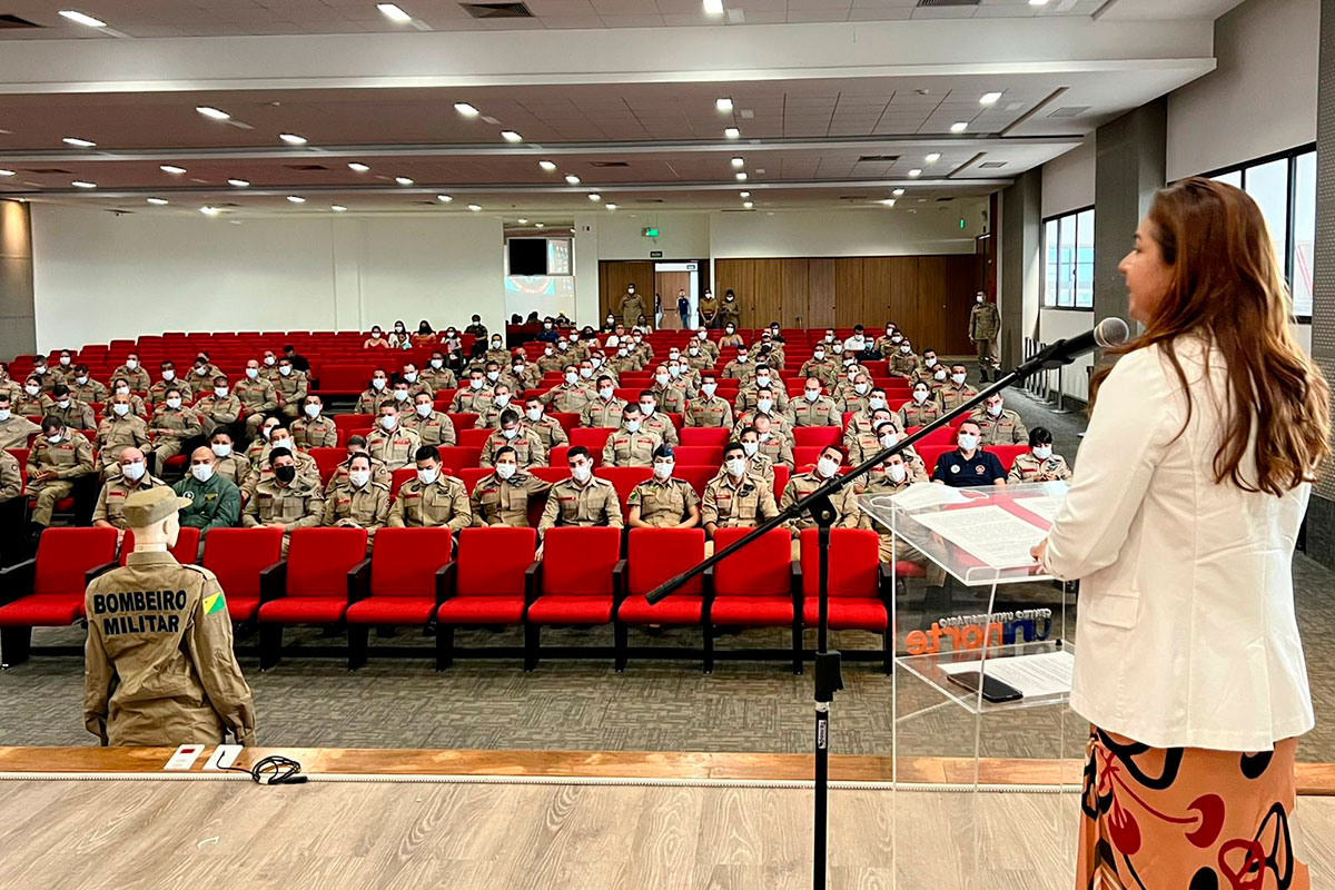 A presidente do Tribunal de Justiça do Acre, desembargadora Waldirene Cordeiro, participou na manhã desta quinta-feira, 4, da aula inaugural do Curso de Formação do Corpo de Bombeiros Militares do Acre (CBMAC), realizado no auditório da Uninorte.