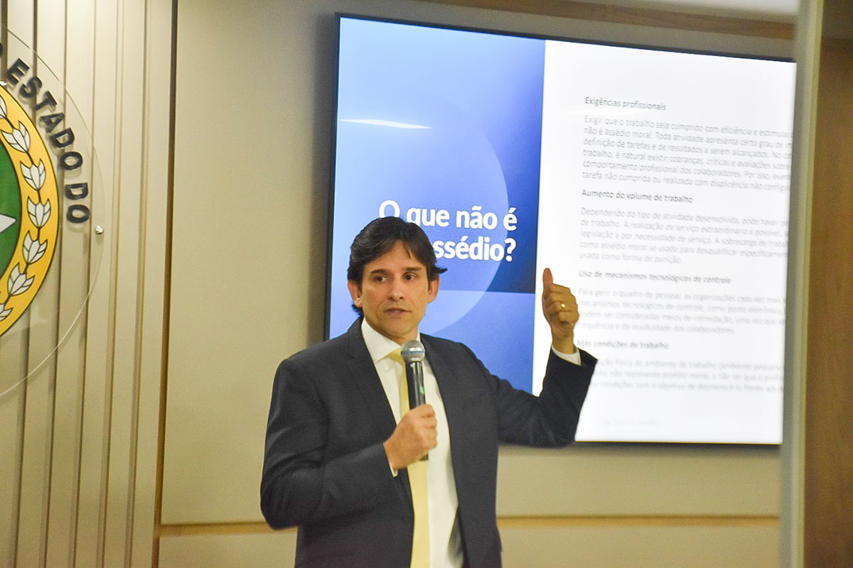 O juiz é presidente da Comissão de Prevenção e Enfrentamento do Assédio Moral, Sexual e da Discriminação do TJAC e durante a conversa com os integrantes da DPE/AC falou sobre os instrumentos normativos que existem, os cuidados necessários para promover um clima leve entre no trabalho e apontou consequências psicológicas que essas condutas geram nas pessoas que sofrem com isso.