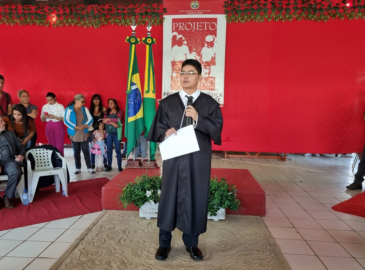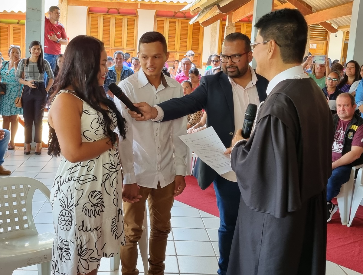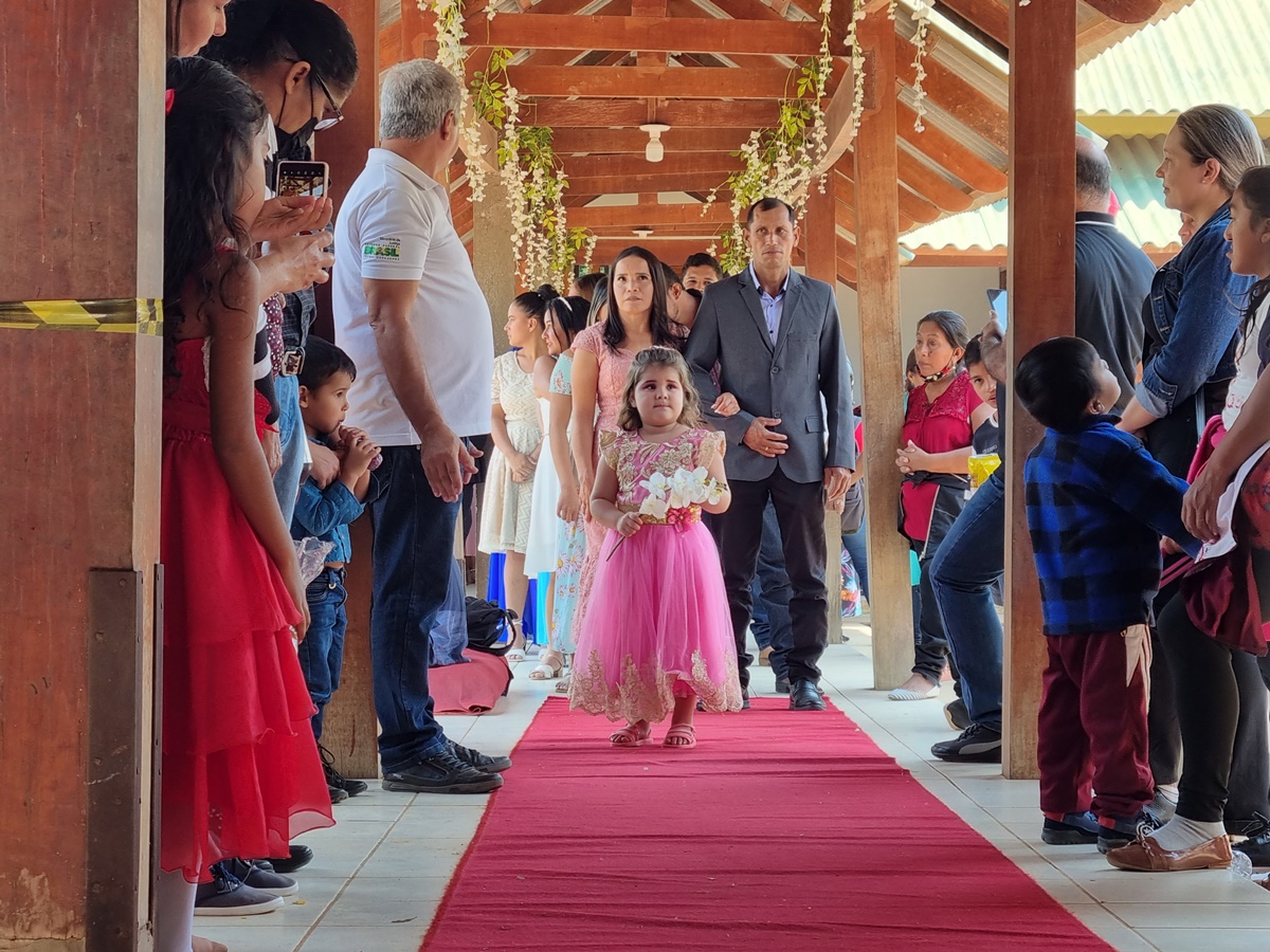 Um dos momentos mais emocionantes, o tradicional casamento coletivo oficializou a união de 35 casais, em cerimônia muito prestigiada por parentes e amigos das noivas e noivos. Além do dispositivo de honra, que foi composto pelo juiz de Direito e celebrante da cerimônia de casamento civil Alex Oivane, o prefeito de Epitaciolândia Sérgio Lopes, o coordenador do MP na Comunidade, promotor Dayan Albuquerque, representando o Ministério Público do Estado, promotor de Justiça Juleandro Martins, pela Ordem dos Advogados do Brasil, seccional Acre (OAB-AC), advogado Gabriel Rossi, representando a Defensoria Pública do Estado, a defensora Pública Ariela Andrade e a delegatária do Cartório de Epitaciolândia Valéria Aquino.