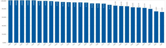 A pontuação garante ao Poder Judiciário acreano o 5º lugar entre os tribunais estaduais mais transparentes. Cinco Tribunais conquistaram o primeiro lugar com 100% na pontuação, outros dois Tribunais ficaram em 2º lugar, com 98,56%, enquanto o 3º colocado ficou com 98,08%, seguido do 4º colocado com 97,12%. O Acre ficou em 5º lugar, com 96,15%.