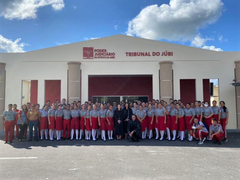 As turmas de 3º ano do Ensino Médio da Escola Militar Dom Pedro II e da Escola Dom Henrique Ruth assistiram as sessões do Tribunal do Júri de Cruzeiro do Sul. Apenas neste mês de outubro, mais de 160 alunos participaram da atividade educativa.