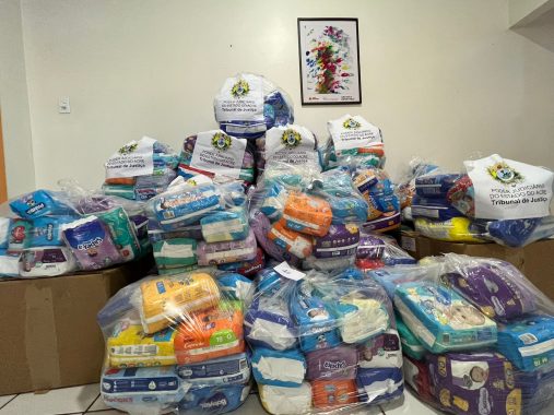 As fraldas são fruto da doação solidária, feita pelos inscritos no processo seletivo para estágio no Poder Judiciário do Acre. Foram 852 pacotes arrecadados, que serão doados para instituições e associações que atendem crianças em situação de vulnerabilidade social.
