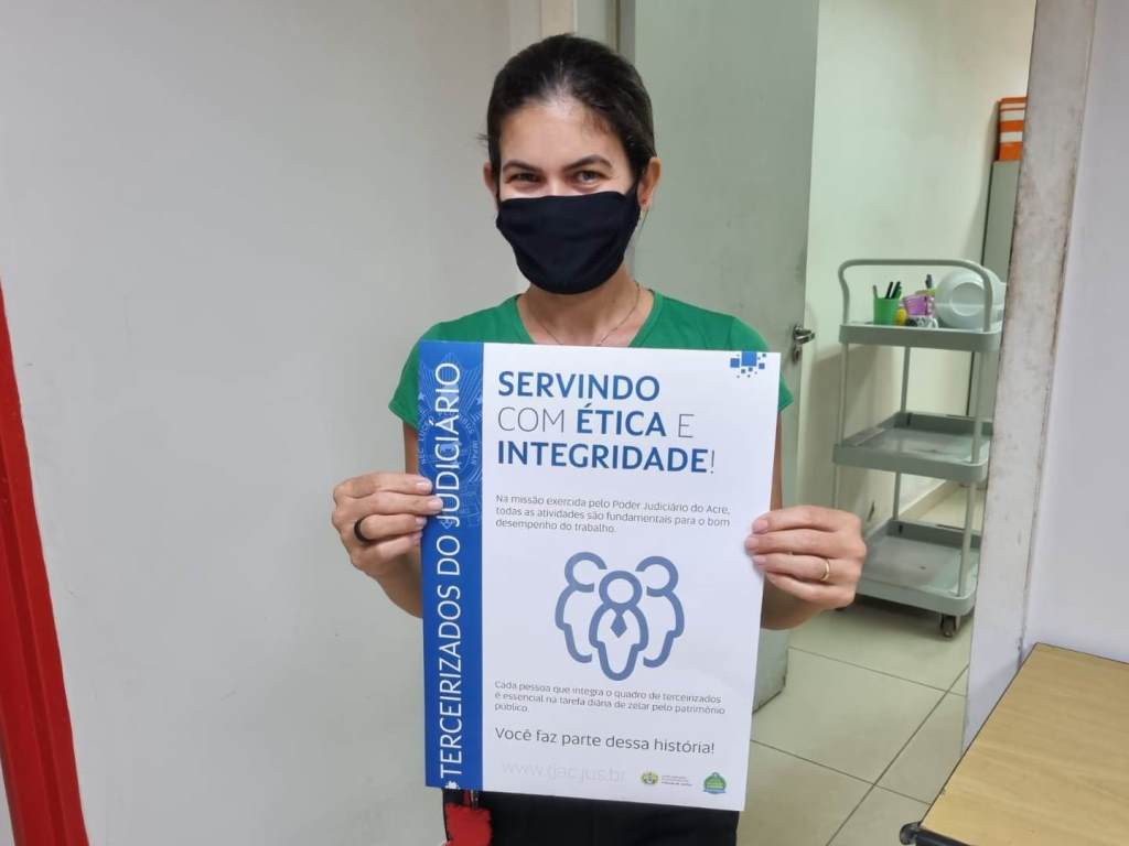 Somadas a essas normatizações a Justiça acreana lançou no final de março deste ano a campanha “Servindo com Ética”. A mobilização é feita de maneira interna com cartazes voltados para servidoras, servidores, colaboradores, fornecedores e terceirizados, informando sobre isonomia, transparência, neutralidade, respeito, honestidade e outros pontos fundamentais para o exercício da profissão de acordo com sua atribuição. Os cartazes foram instalados nas unidades Judiciárias do Estado e pretendem conscientizar o público interno e externo quanto às decisões éticas que precisam ser tomadas nas rotinas diárias de cada setor.