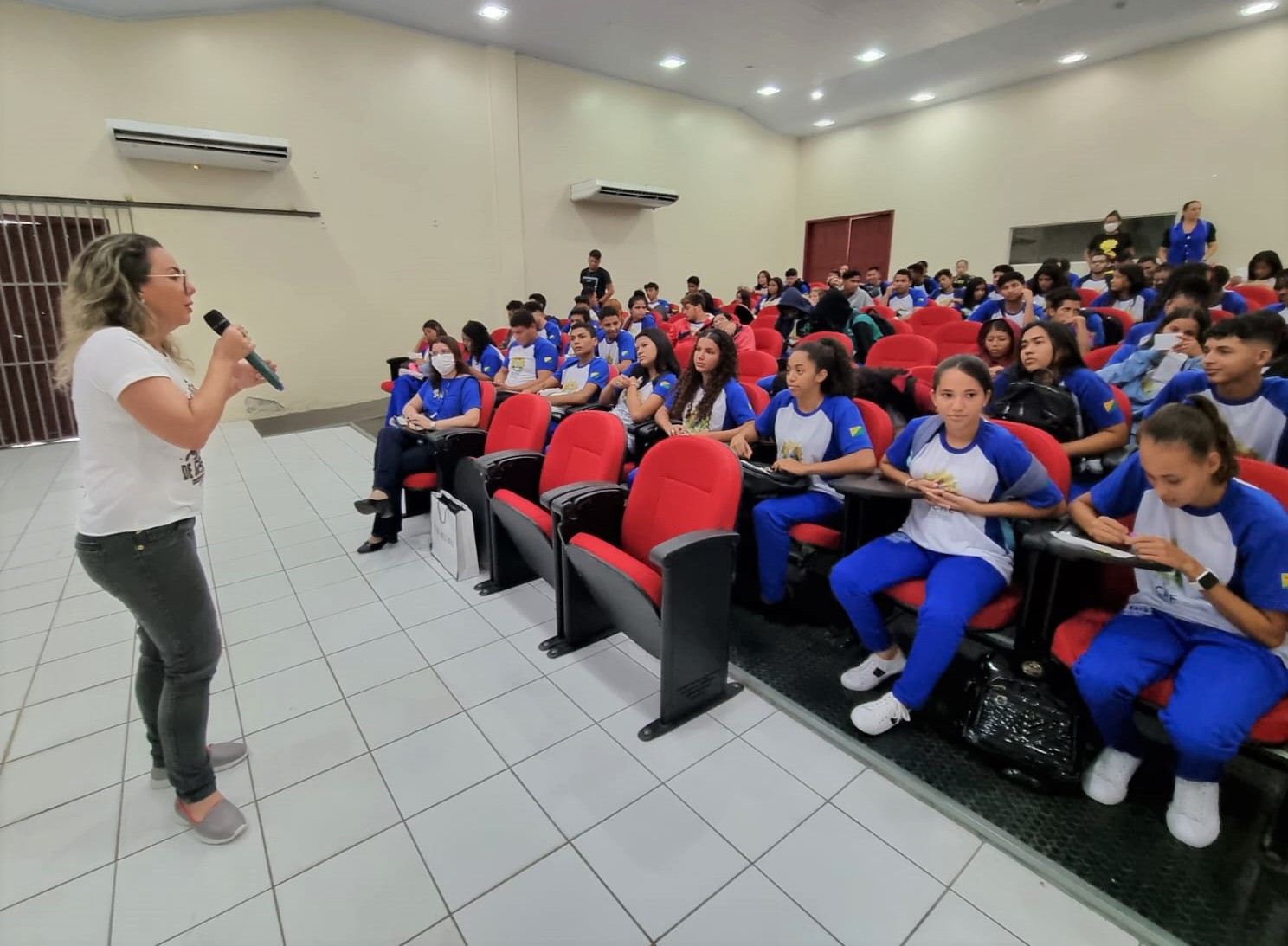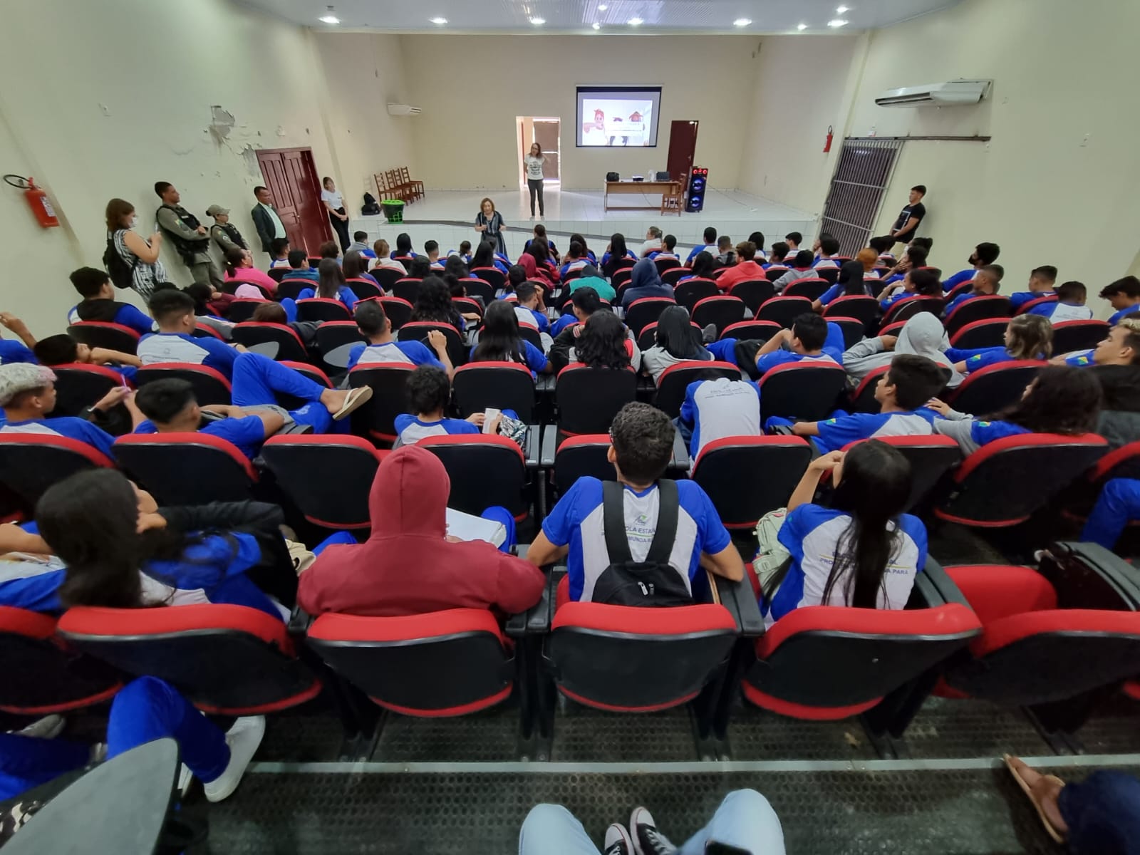 Sentadas nas últimas fileiras, as colegas de turma, Rafaela Chaves da Silva e Vitória Ketlyn, ambas de 16 anos de idade, comentaram que gostaram da palestra, principalmente da música, “Preta da Quebrada”, da cantora Flora Matos. A canção foi passada pela palestrante do evento.