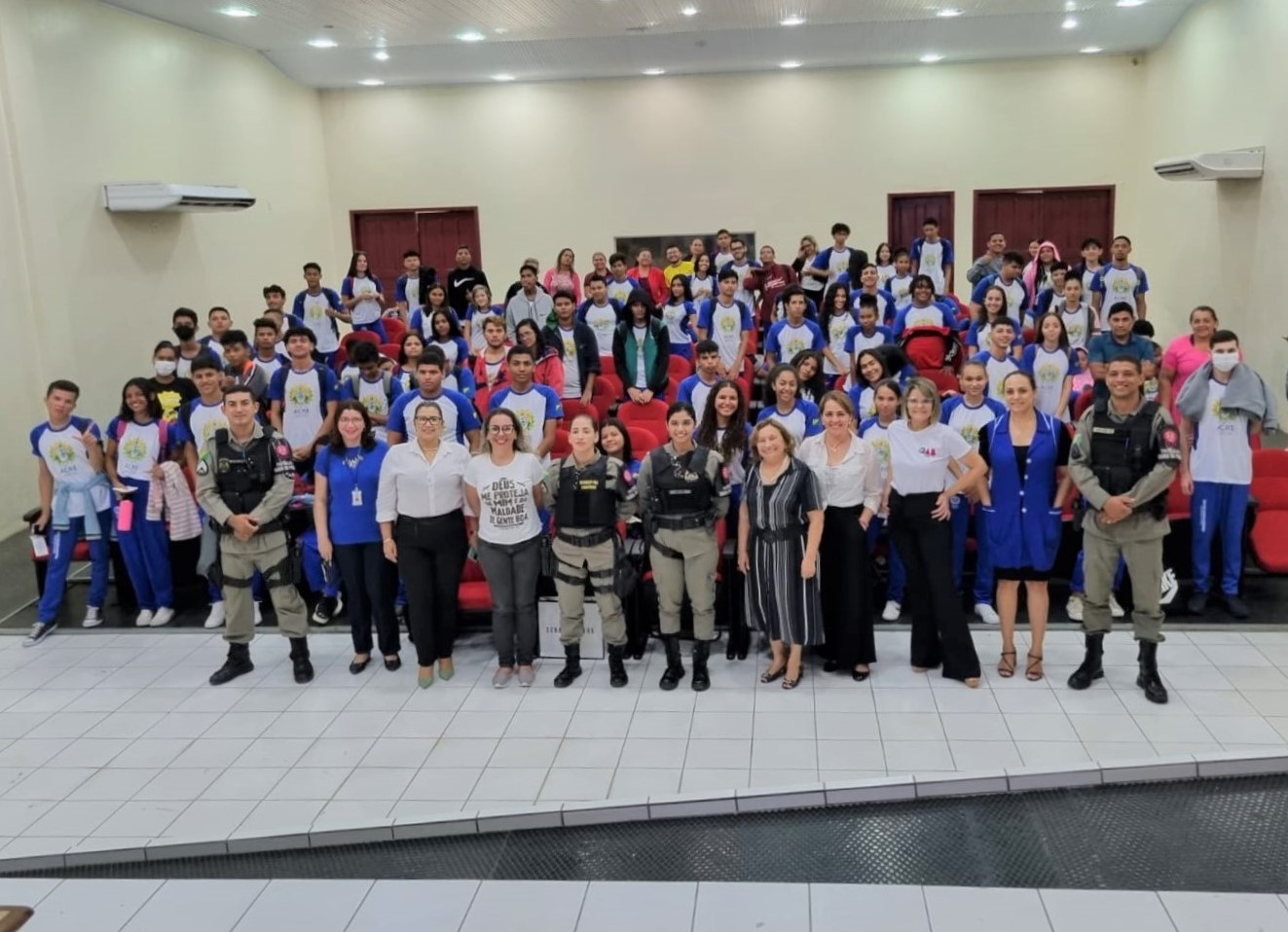 Nesta sexta-feira, 25, a Escola Raimunda Silva Pará, situada no Conjunto Habitacional Cidade do Povo, foi contemplada com mais uma ação da Coordenadoria Estadual da Mulher em Situação de Violência Doméstica e Familiar (Comsiv), com apoio e incentivo da desembargadora-presidente do TJAC, Waldirene Cordeiro e da Escola do Poder Judiciário do Acre (Esjud), aliadas a equipe multidisciplinar e parceiras da Rede de Proteção à Mulher.