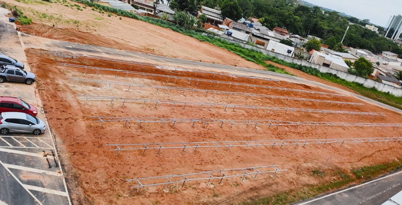 Já está em andamento o trabalho de implantação do sistema fotovoltaico na Cidade da Justiça de Rio Branco. A empresa responsável está trabalhando no parque solar, seguindo com a implantação da estrutura que receberá os módulos fotovoltaicos.