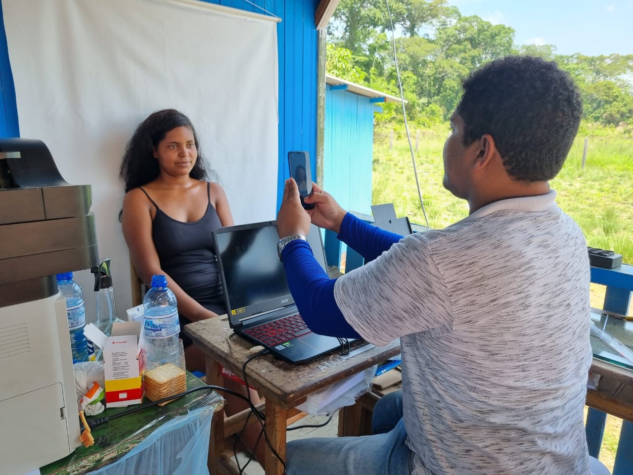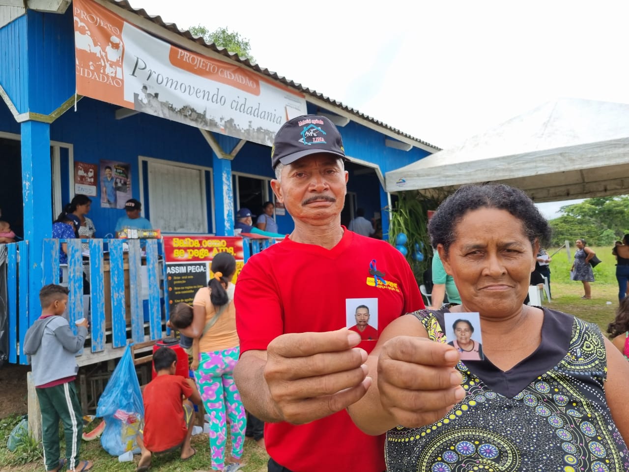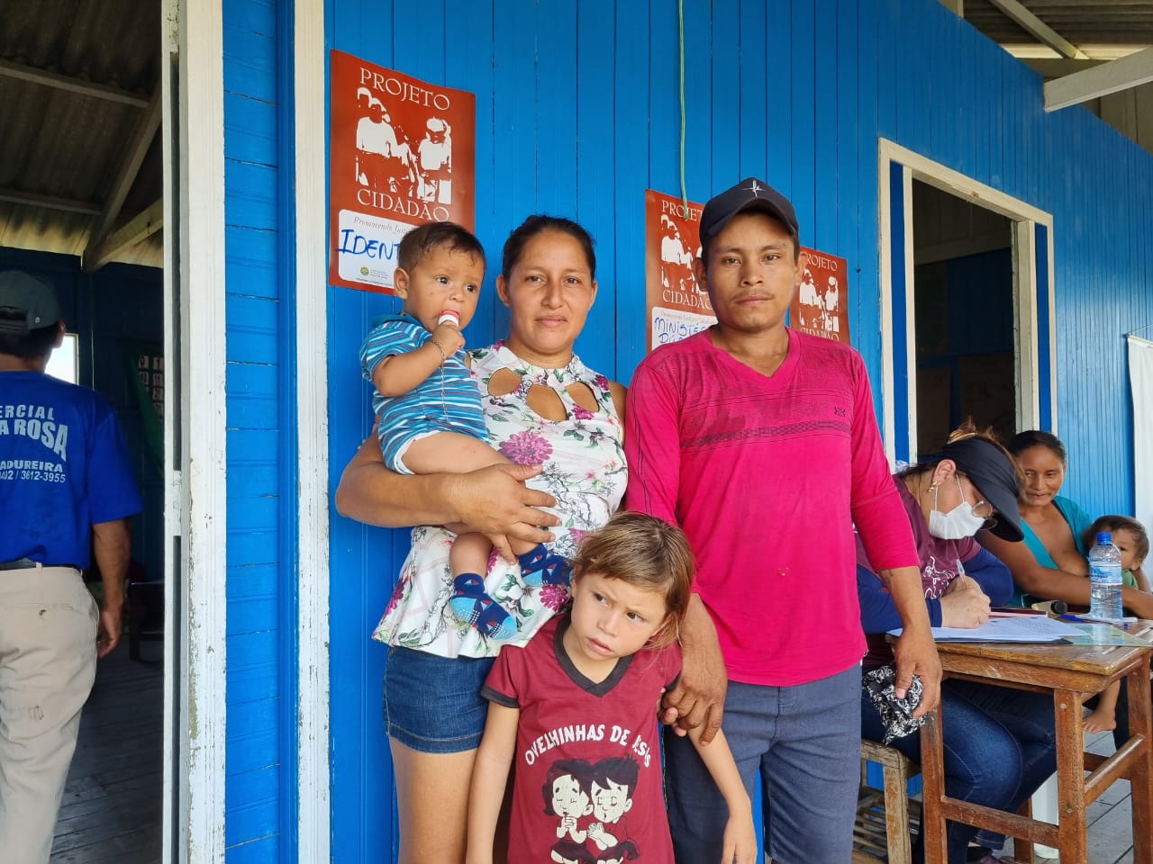 Nefson Garcia da Silva e Jaila Cardina Nunes, são casados e tem 2 filhos. Souberam da atividade através do rádio e foram em busca de consulta médica, vacina dos filhos e regularizar documentos. Jaila não esconde a animação em poder aproveitar a oportunidade. “Soubemos pelo rádio. Aproveitamos a chance porque meu marido só tem o registro de nascimento, e não tinha os outros documentos. Se não tivesse uma ação com essa, ia demorar um bom bocado pra gente resolver isso, pois até chegar na cidade demora quase um dia de viagem, fora as taxas. Acho muito importante uma atividade assim, é uma sorte nossa, porque ir até a cidade tem gasto pra ir e pra voltar e vindo até a comunidade está bem mais perto. Isso facilita muito. Agradeço muito demais, meu deus do céu!”.