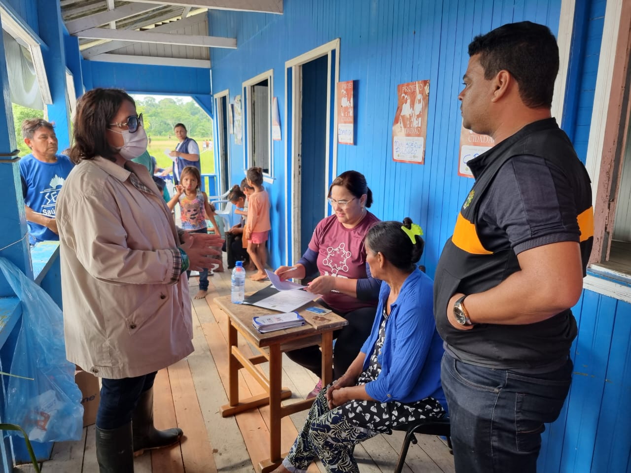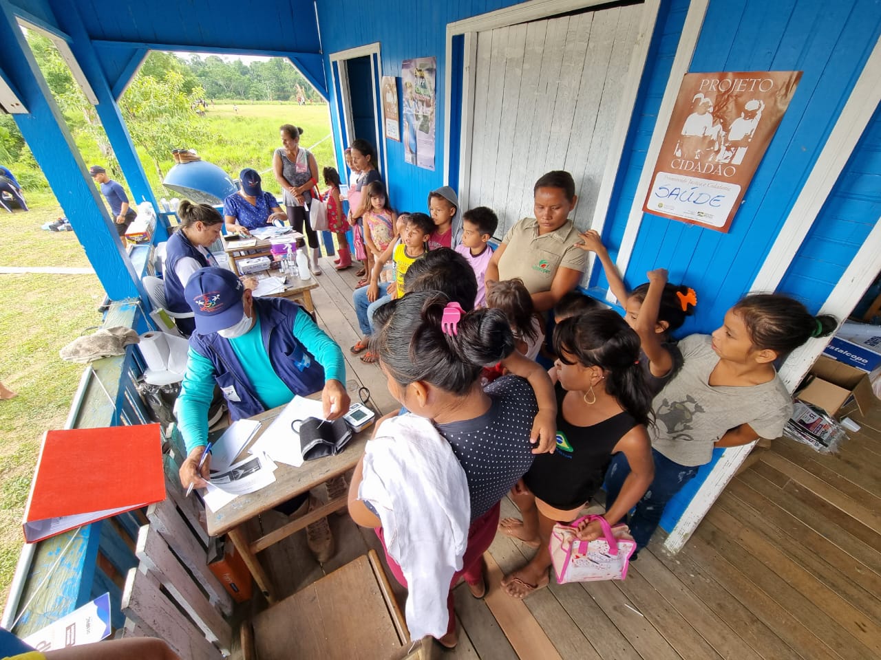 Os atendimentos ocorreram na Escola Chico Mendes, na Comunidade Espírito Santo, nos dias 10 e 11 de novembro. Serviços de emissão de RG, CPF, atendimentos jurídicos, atendimentos médico e odontológico, testes rápidos e vacinas, além de distribuição de cestas básicas aos mais carentes.