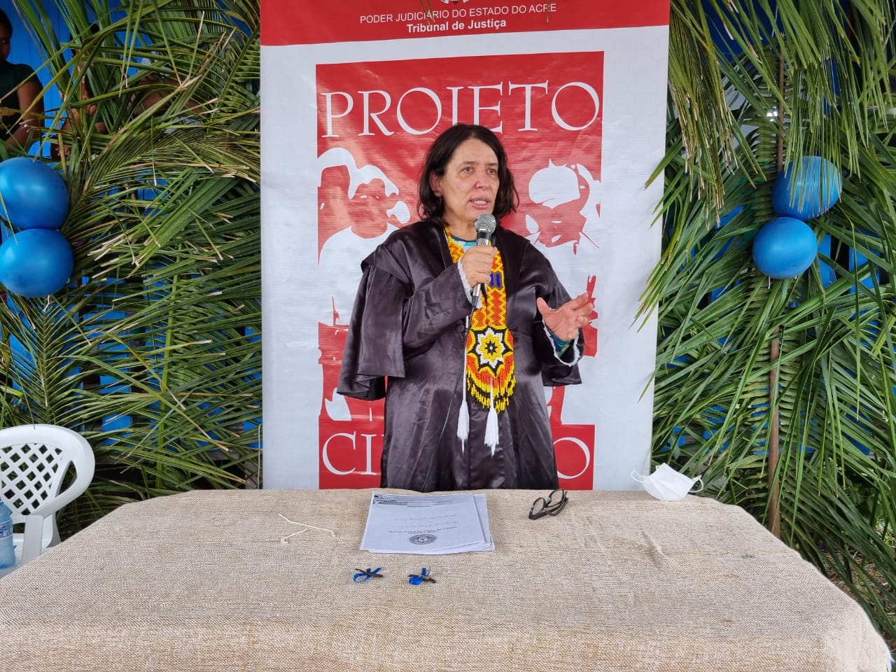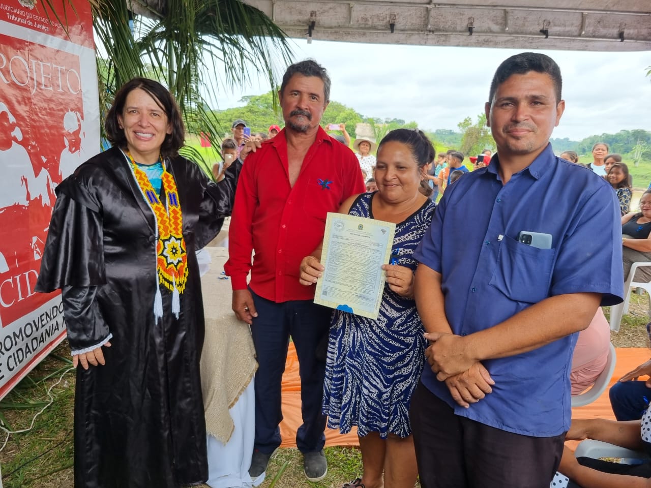 A juíza titular da Comarca de Manoel Urbano, Ana Paula Saboya, esteve presente conferindo as ações. Na ocasião, também realizou várias audiências, principalmente de Certidão de Nascimento tardias. Visitando pela primeira vez a comunidade, a magistrada foi recebida com fogos e alegria pela comunidade.
