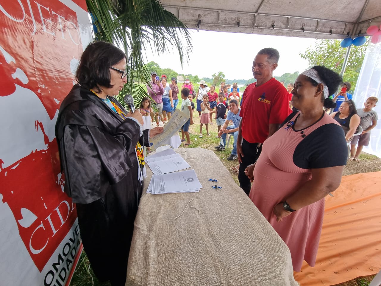 A equipe do Projeto Cidadão percorreu 214 km até Manoel Urbano, em seguida, viajou de barco por mais 24 horas, subindo o Rio Purus para levar orientações jurídicas, atendimentos médico e odontológico, além do tradicional casamento coletivo