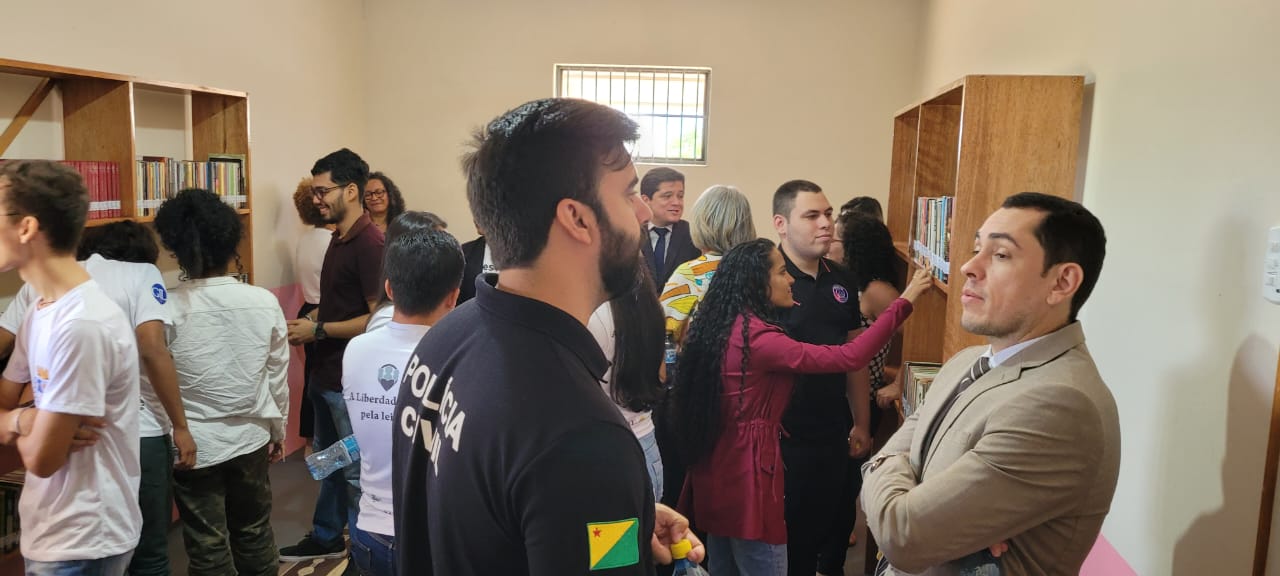 O juiz Flávio Mundim, junto ao promotor de Justiça Ildon Maximiano e o diretor do Complexo Penitenciário do Vale do Juruá Elves Barros falaram sobre a inauguração da biblioteca na Unidade Penitenciária Guimarães Lima. Essa é uma unidade feminina, também situada em Cruzeiro do Sul.