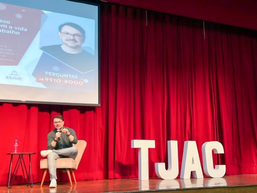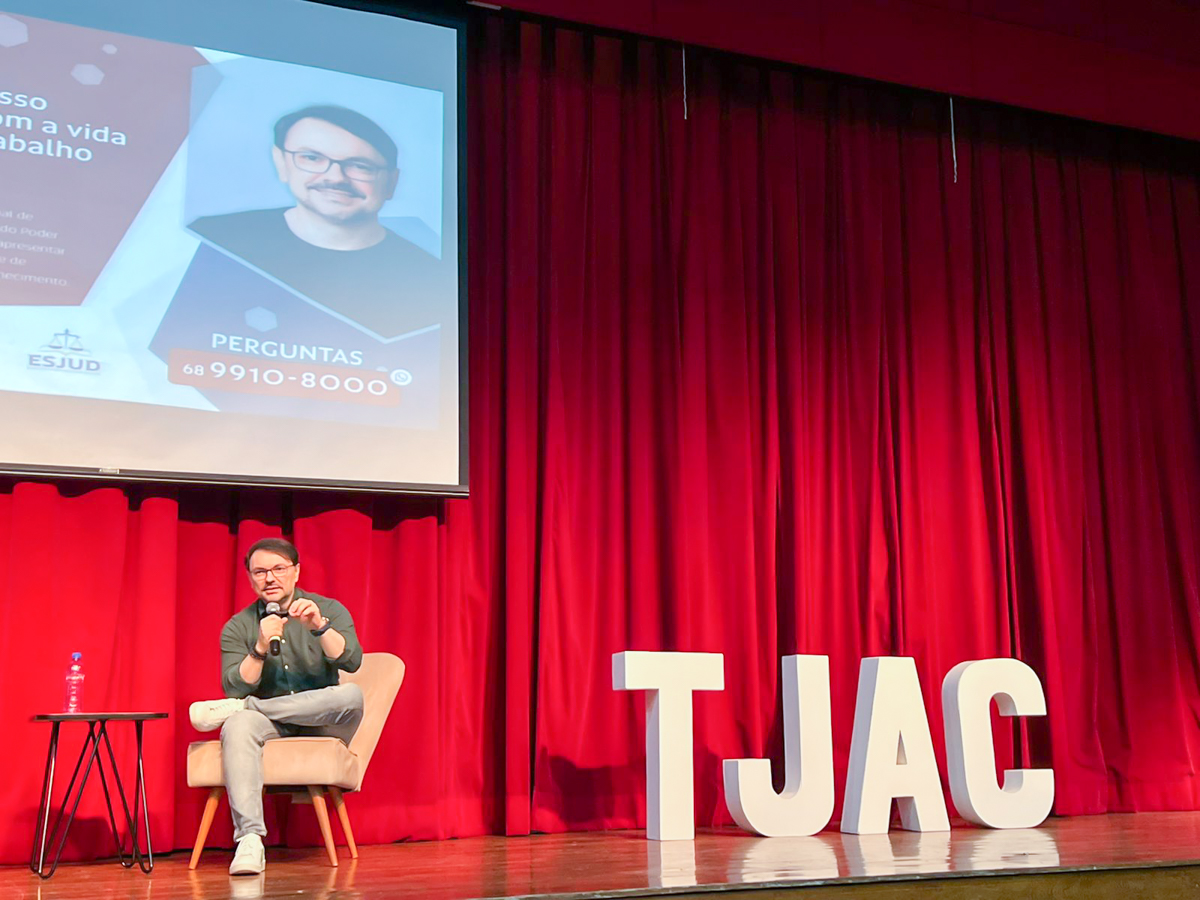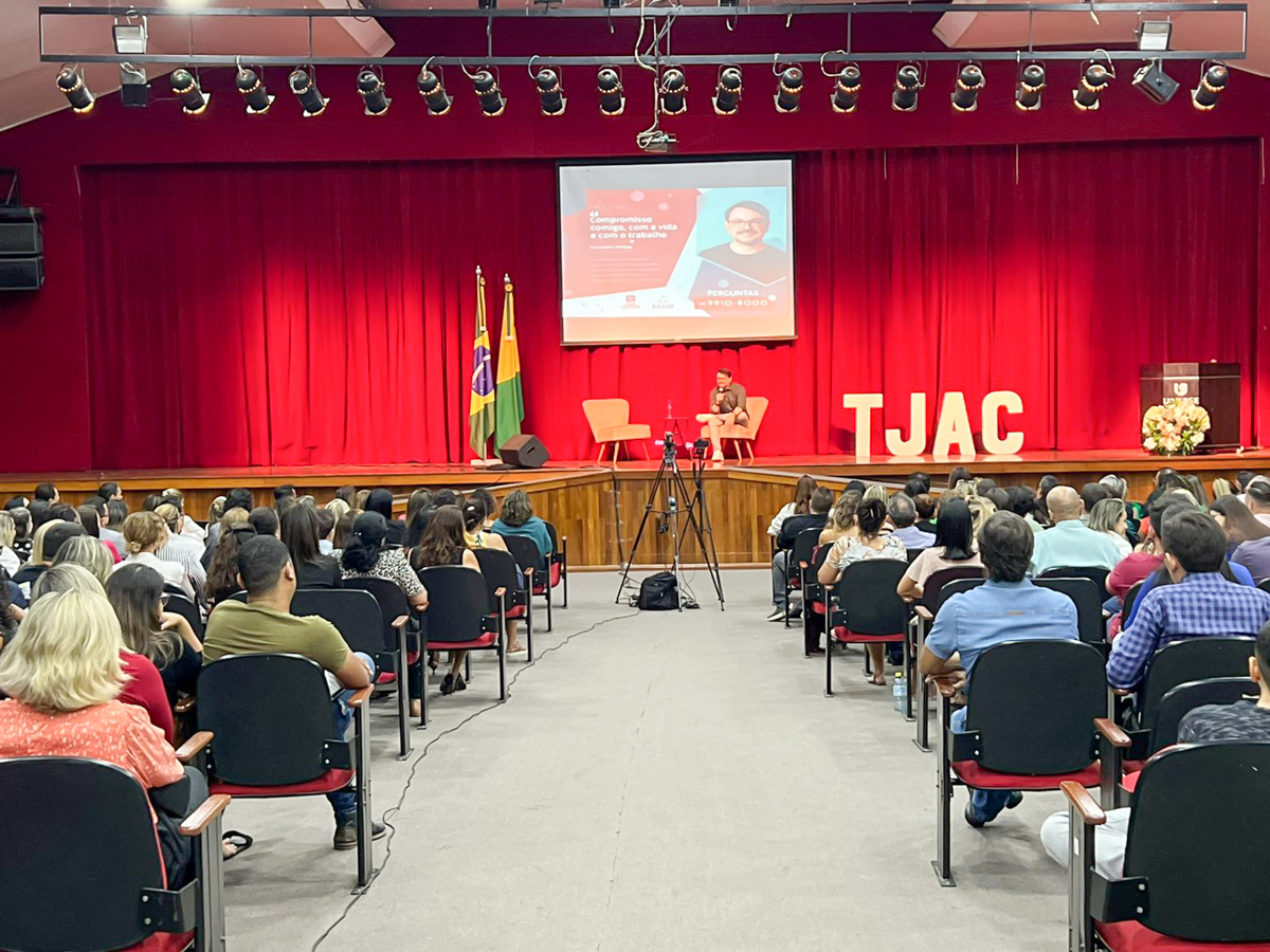 O Tribunal de Justiça do Acre (TJAC) e a Escola do Poder Judiciário do Acre (Esjud) promoveram, nesta quarta-feira (7), a palestra “Compromisso comigo, com a vida e com o trabalho”. A atividade foi ministrada pelo psicólogo e escritor paraibano Rossandro Klinjey, referência nas áreas de Educação e Desenvolvimento Humano.