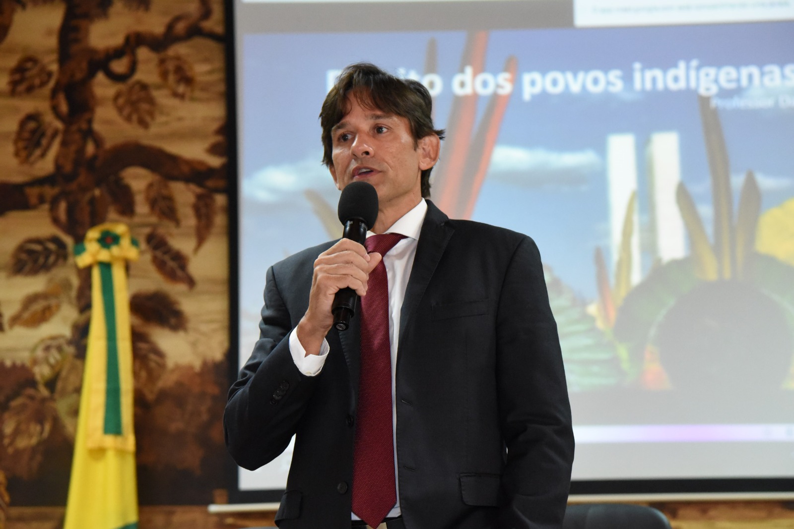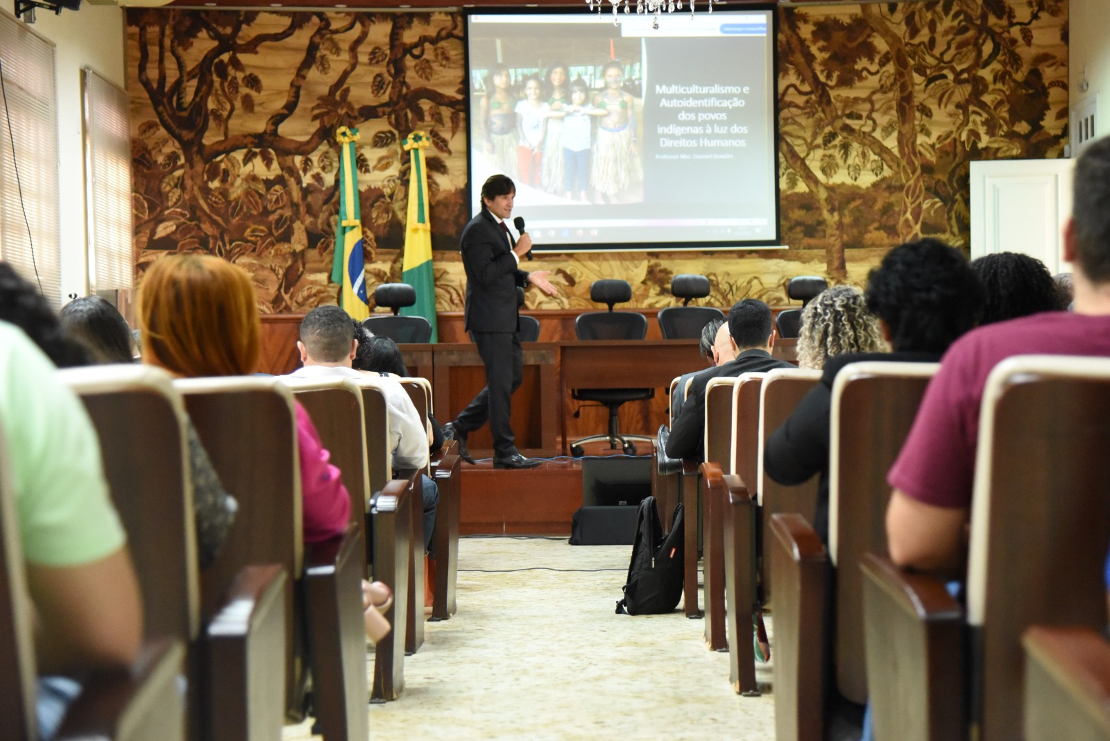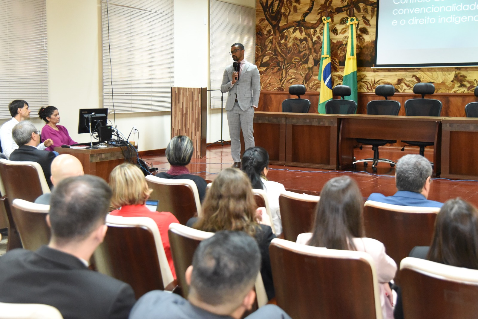 O juiz de Direito Danniel Bomfim ministrou a respeito do “Direito dos Povos Indígenas e Poder Judiciário”, tema central, abordando os avanços legislativos, o ordenamento jurídico e os desafios que devem ser enfrentados pelas instituições.
