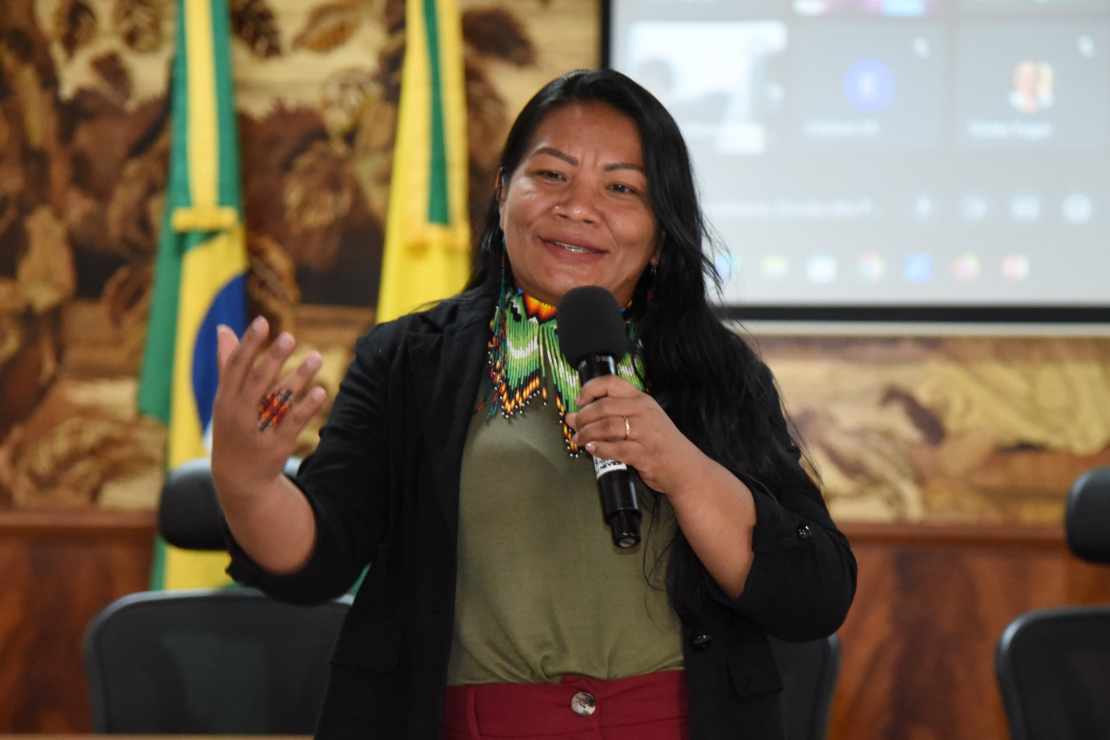 O Painel III, “Resolução dos Conflitos Internos pelas Comunidades Indígenas. Segurança Pública nas Aldeias (facção nas aldeias, violência contra as mulheres indígenas, invasões em terras indígenas)”, foi apresentado pela ouvidora-geral Soleane Manchineri.