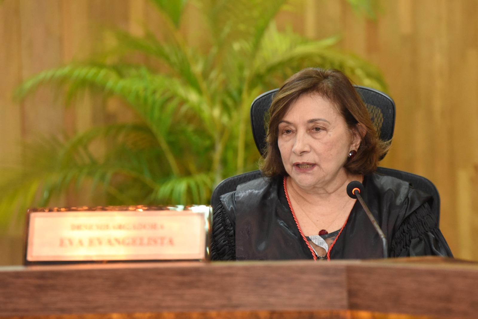 A desembargadora Eva Evangelista foi escolhida para deixar sua mensagem em nome de todas as colegas e dos colegas de bancada. A magistrada ressaltou que esta foi a última sessão de abertura do Ano Judiciário que participa, pois no segundo semestre deste ano se aposentará.