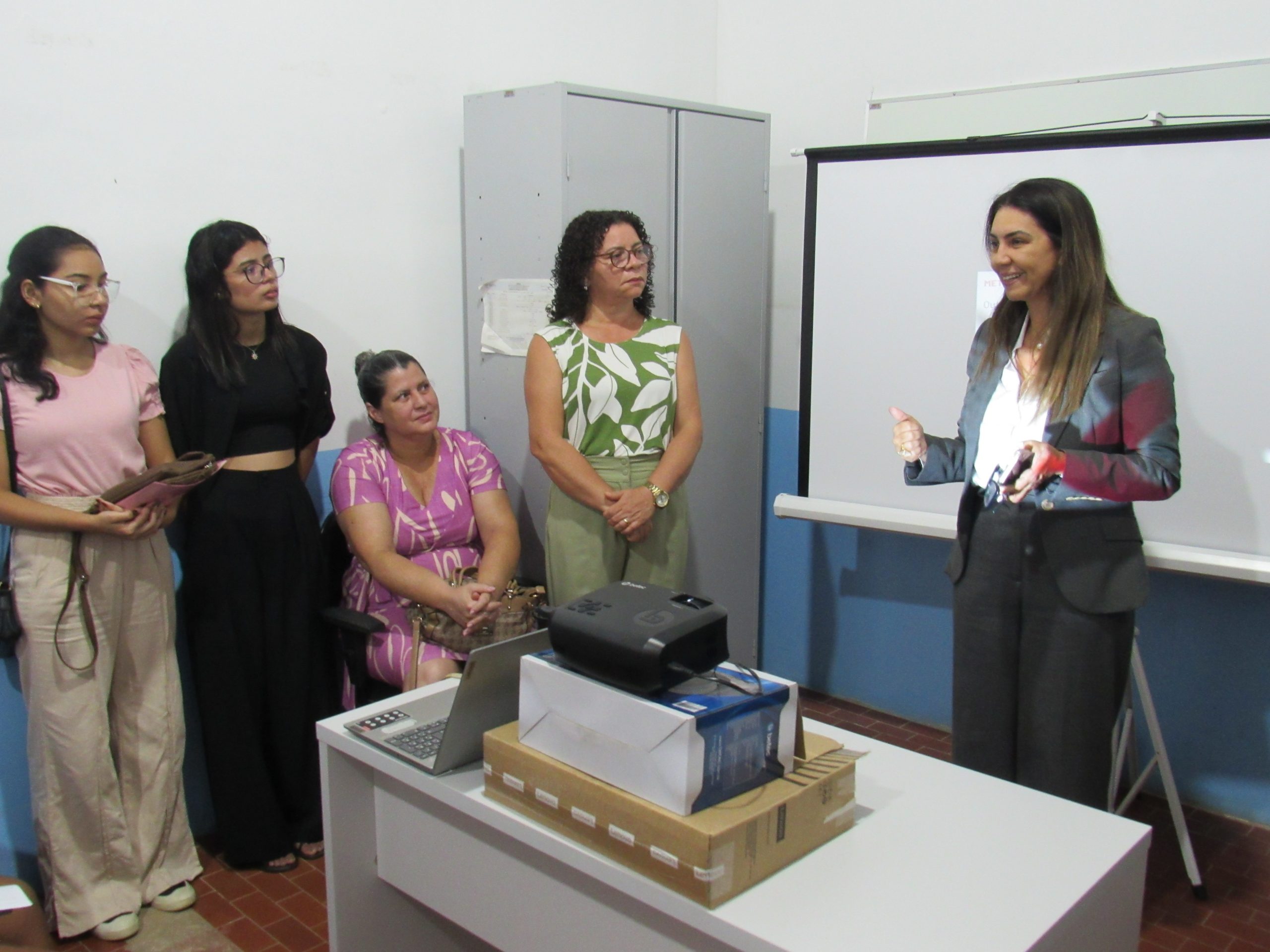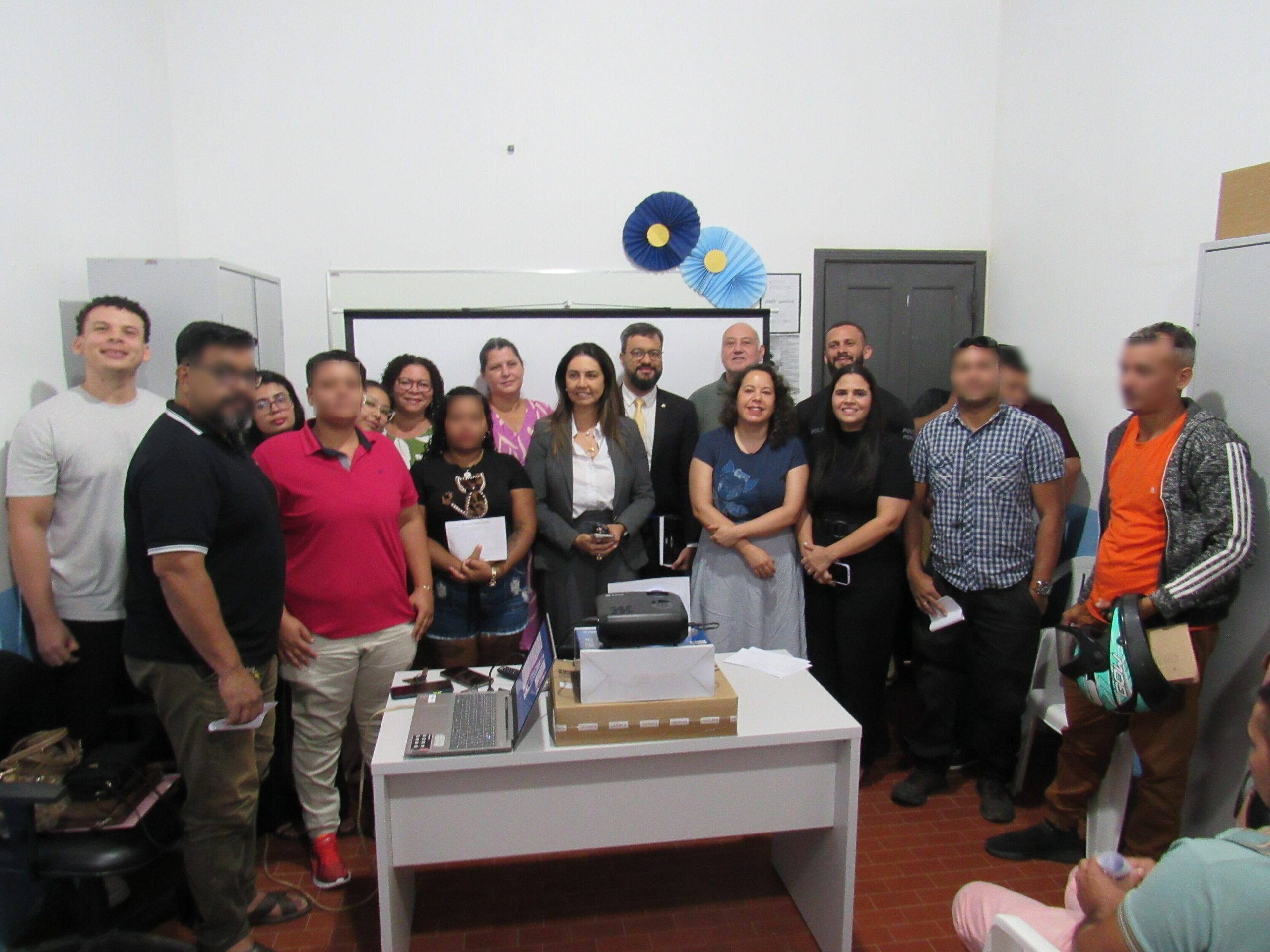 A juíza de Direito, Andrea Brito, titular da Vara de Execuções Penais e Medidas Alternativas (Vepma) e membro do Grupo do Monitoramento e Fiscalização do Sistema Carcerário (GMF), esteve presente na reunião ocorrida nesta terça-feira, 5, na Unidade de Monitoramento Eletrônico (Umep), onde as monitoradas e monitorados foram orientados sobre como funciona o projeto e a importância para remição da pena.