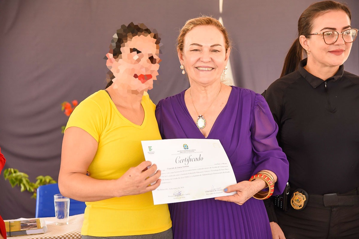 “Cumprimento as formandas e destaco que estamos priorizando esse público tão especial, o qual são as mulheres, destacando programas direcionados a elas. Temos, por exemplo, o Mulheres Mil, que é um programa do Governo Federal trazendo empoderamento feminino, por meio de cursos e atividades, para que as mulheres possam ter uma renda. Programa parecido com o de vocês. E ao sair daqui encontrem um ambiente que receba vocês de forma gentil,” destacou a reitora do Ifac, Rosana Cavalcante.