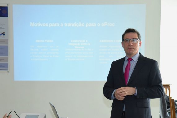 Responsável em fazer a apresentação do projeto de implantação do eProc, o desembargador Laudivon Nogueira, ressaltou os avanços que o TJAC busca alcançar, mostrando toda a caminhada até esse resultado.
