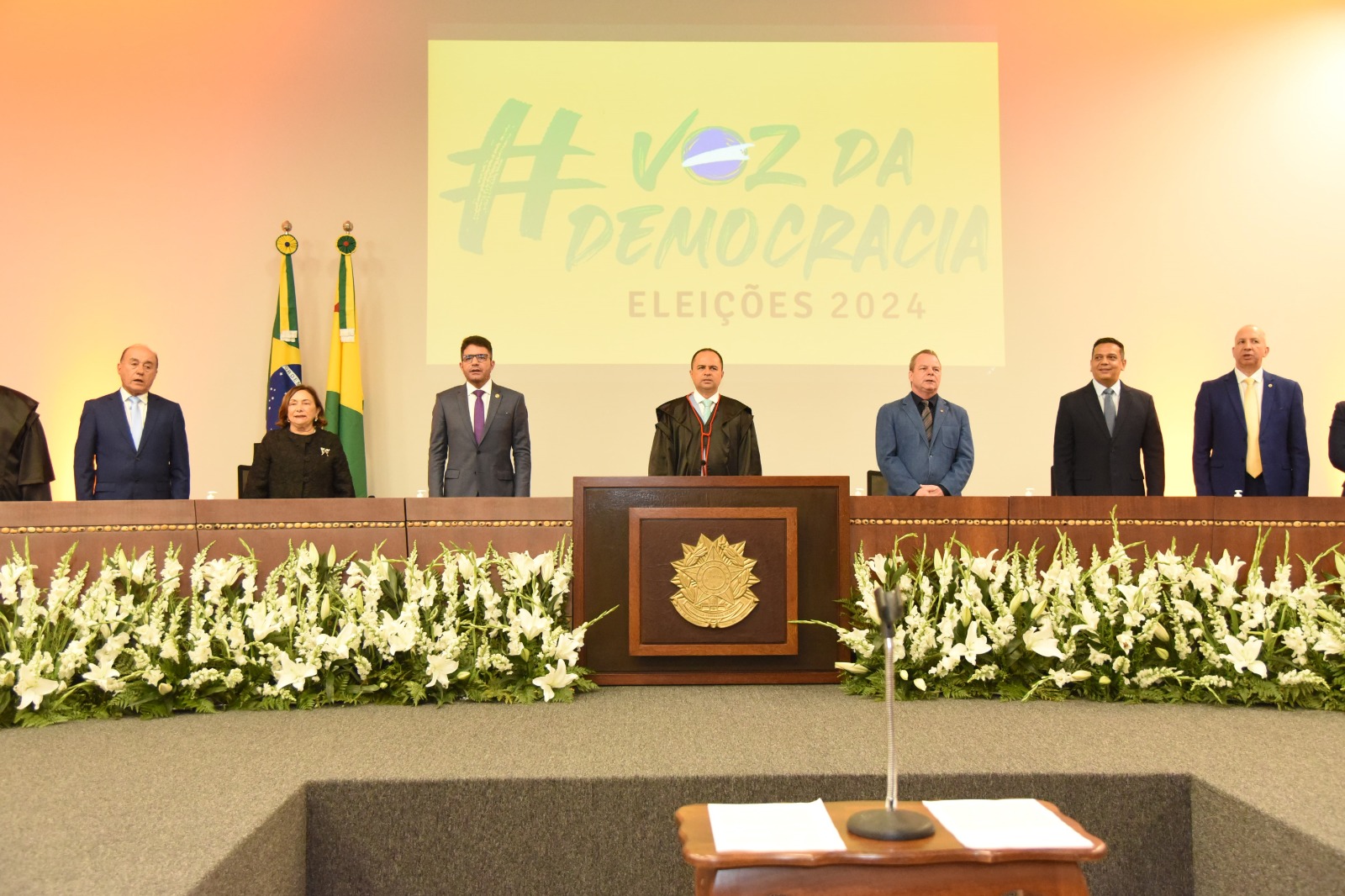 A mesa foi composta pelos membros da Corte Eleitoral do Acre; pelo procurador Regional Eleitoral, Fernando Piazenski; pelo governador do Acre, Gladson Cameli; pela desembargadora Eva Evangelista; pelo deputado estadual Pedro Longo – representando a presidência da Assembleia Legislativa; pelo advogado Thalles Vinícius Sales – representando a OAB/Seccional Acre; e pelo prefeito de Rio Branco, Tião Bocalom.