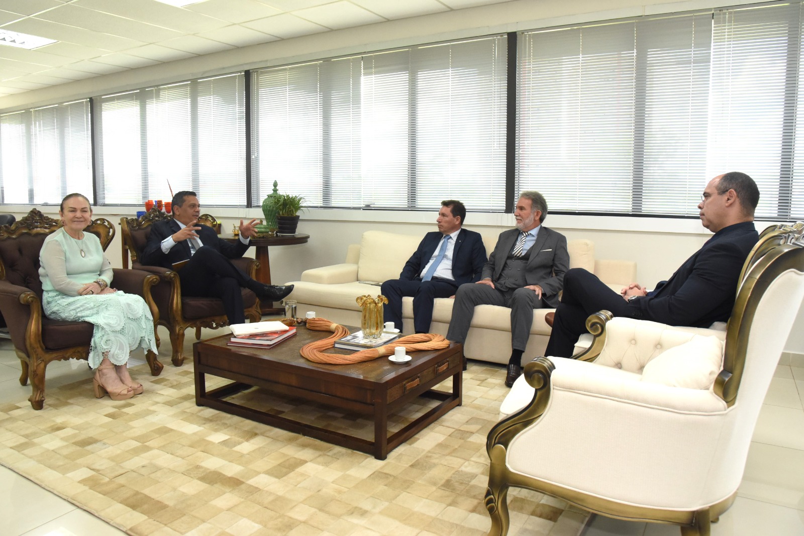O encontro ocorreu no gabinete da presidência do TJAC e contou ainda com a presença do vice-presidente, desembargador Luís Camolez, também do desembargador Laudivon Nogueira e do juiz-auxiliar da Presidência, Giordane Dourado.